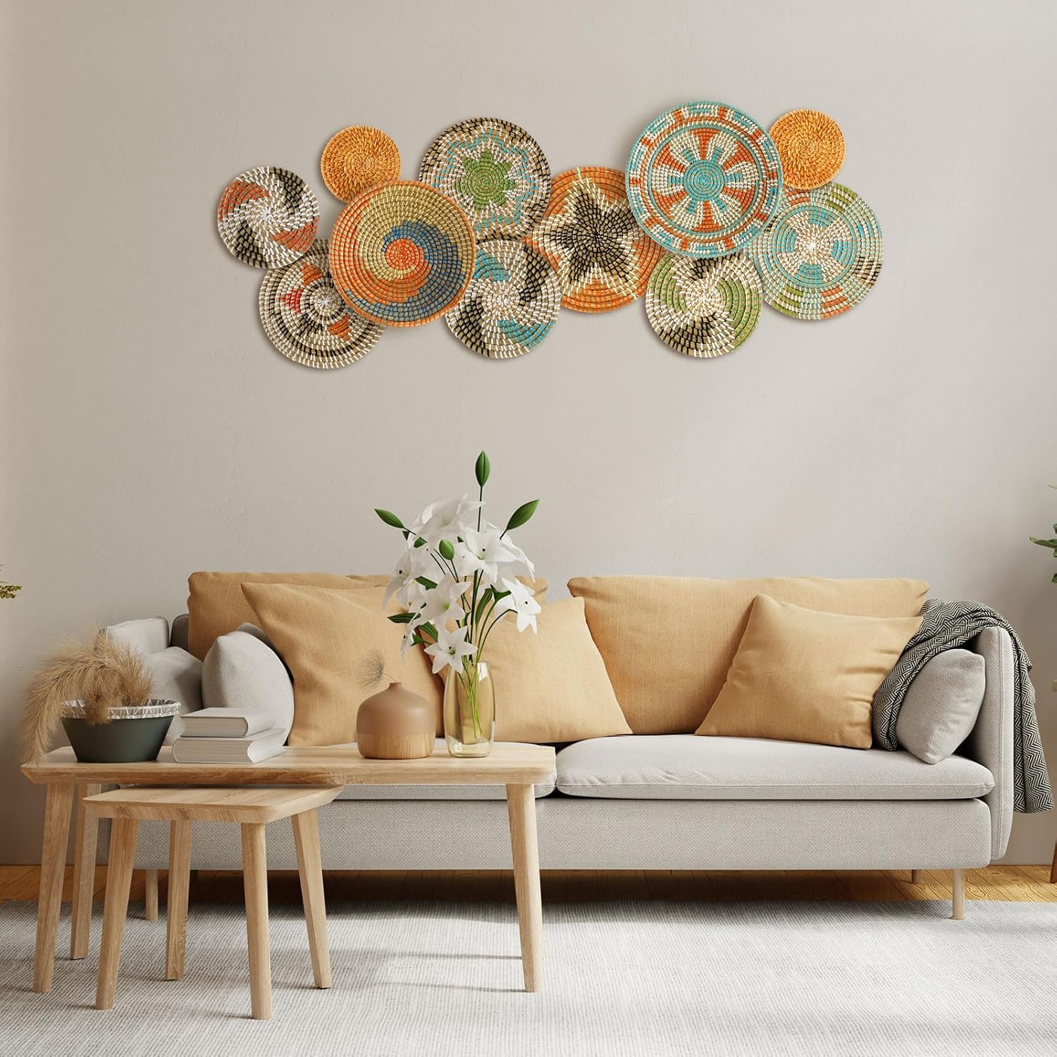 - Wide Range of Applications: boho basket wall decor set as placemats, or as decorative baskets to store toys and accessories, the rustic basket wall art is suitable for many occasions, such as hotels, restaurants, living rooms, bedrooms, schools, stores, offices, dorms, shops, Christmas and more, bringing you an elegant and classic feeling