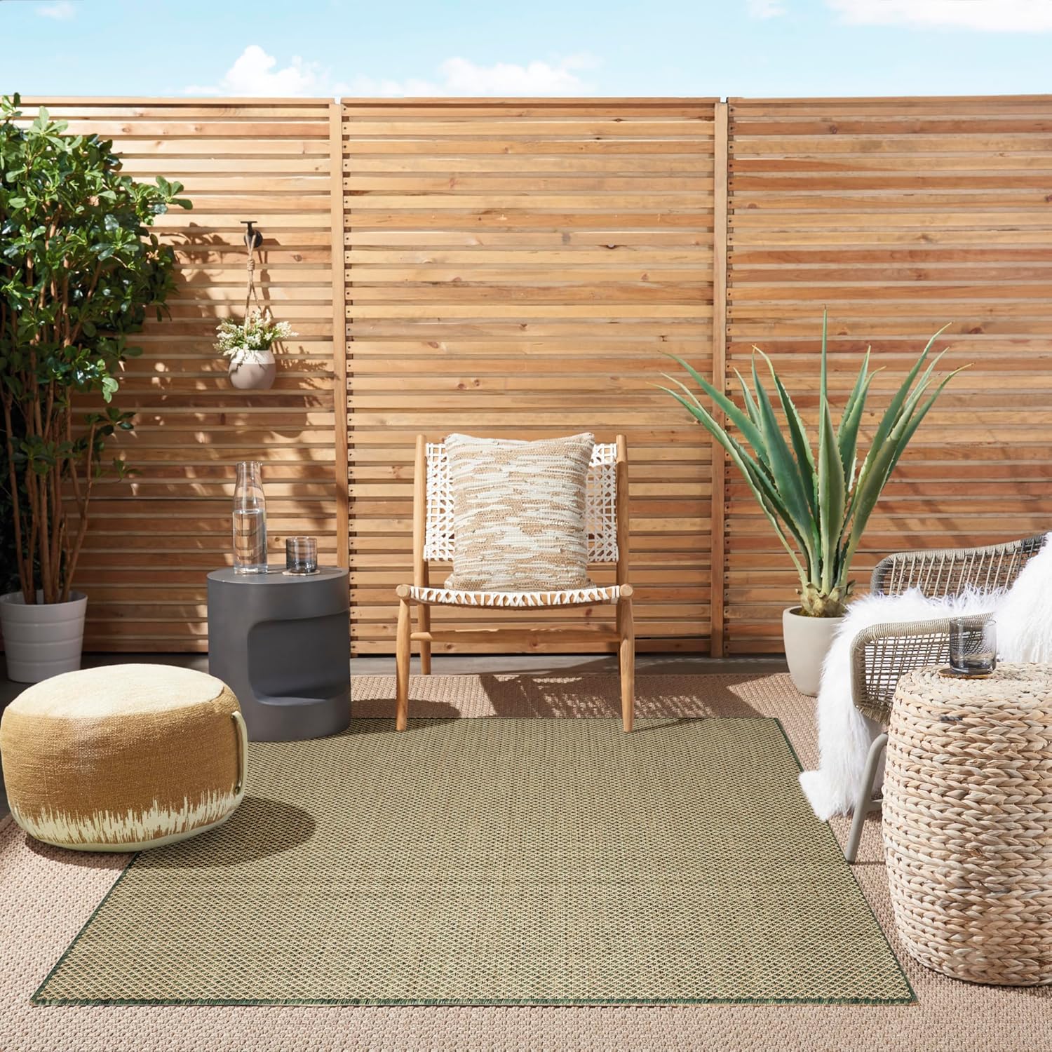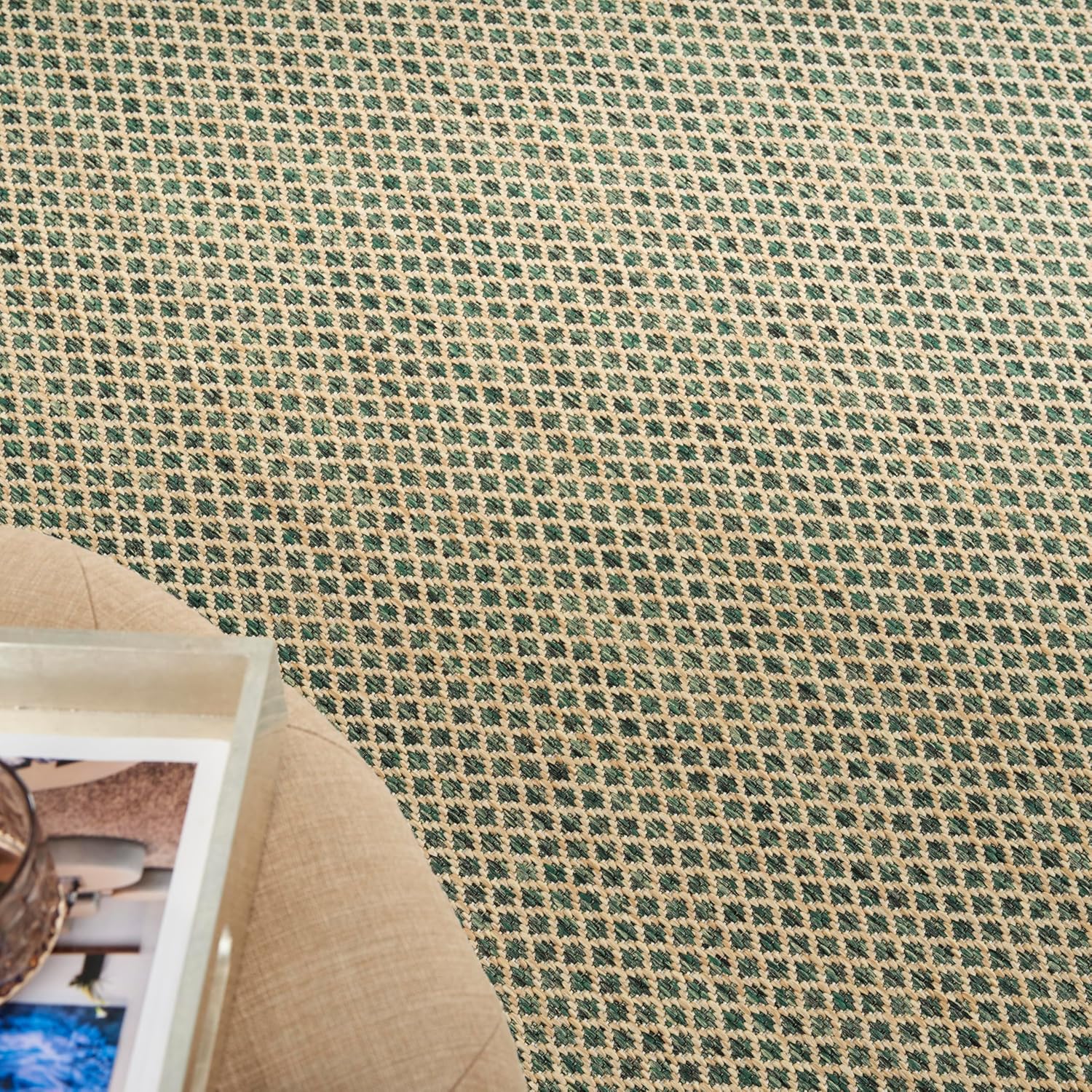 Nourison Home Courtyard Green 4' x 6' Area Rug - Easy Clean, Non Shedding, Bed Room, Living Room, Dining Room, Kitchen (4' x 6')