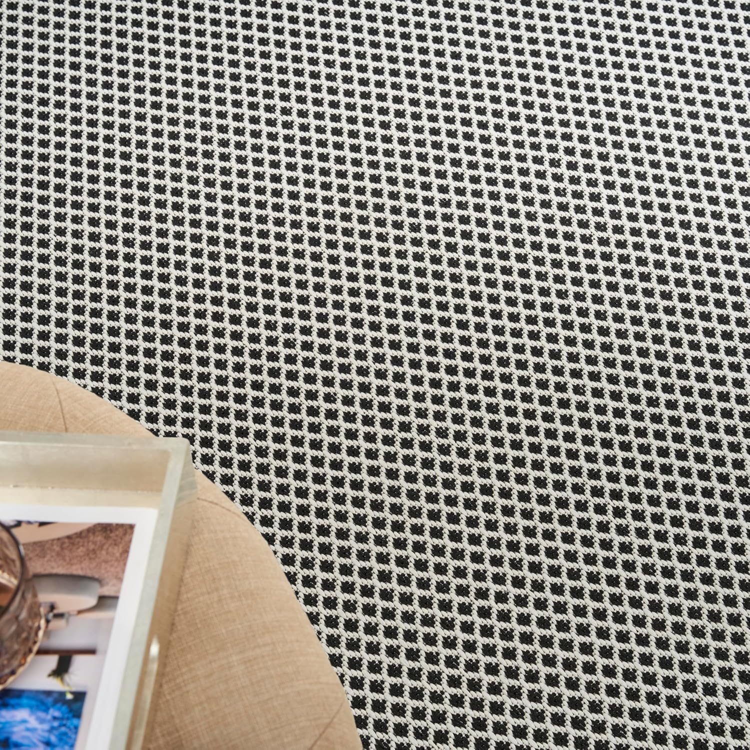 Nourison Home Courtyard Black White 5' x 7' Area Rug - Easy Clean, Non Shedding, Bed Room, Living Room, Dining Room, Kitchen (5' x 7')
