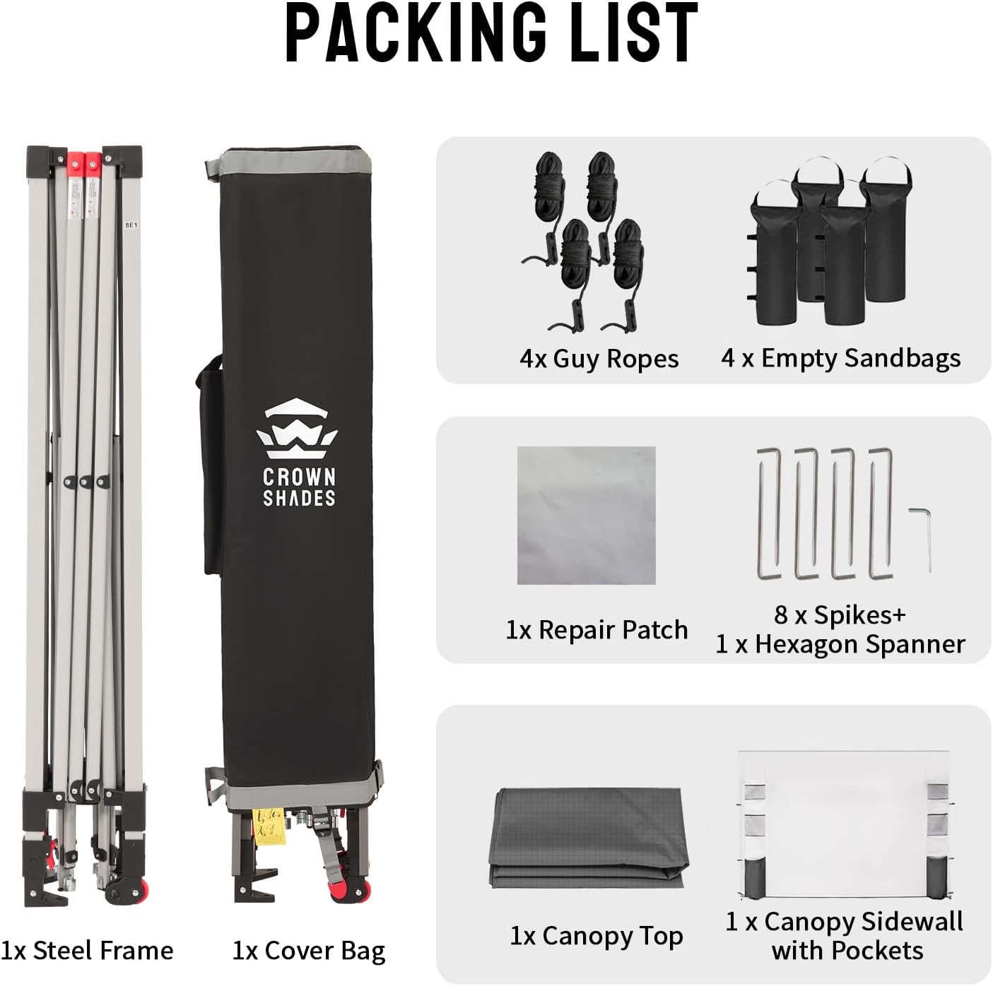 CROWN SHADES Canopy Tent 10x10 Pop Up Canopy Outdoor Shade with Pockets Sidewall, Easy Up Sun Shelter with One Person Set Up Center Lock, Portable Instant Camping Beach Canopies Tents, Grid Grey