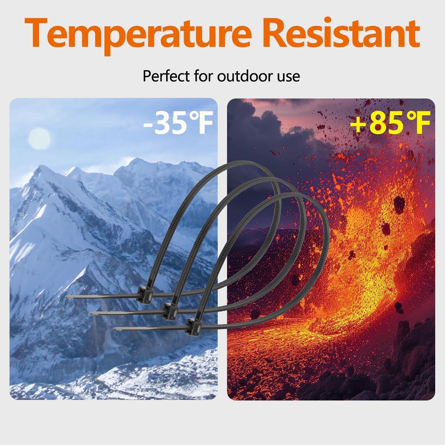 12 Inch White Zip Ties (1200 Pack), 2025 New Patented Design,110 LBS Tensile Strength, Self-Locking Nylon PA66 UV Resistant Cable Ties for Indoor and Outdoor Use