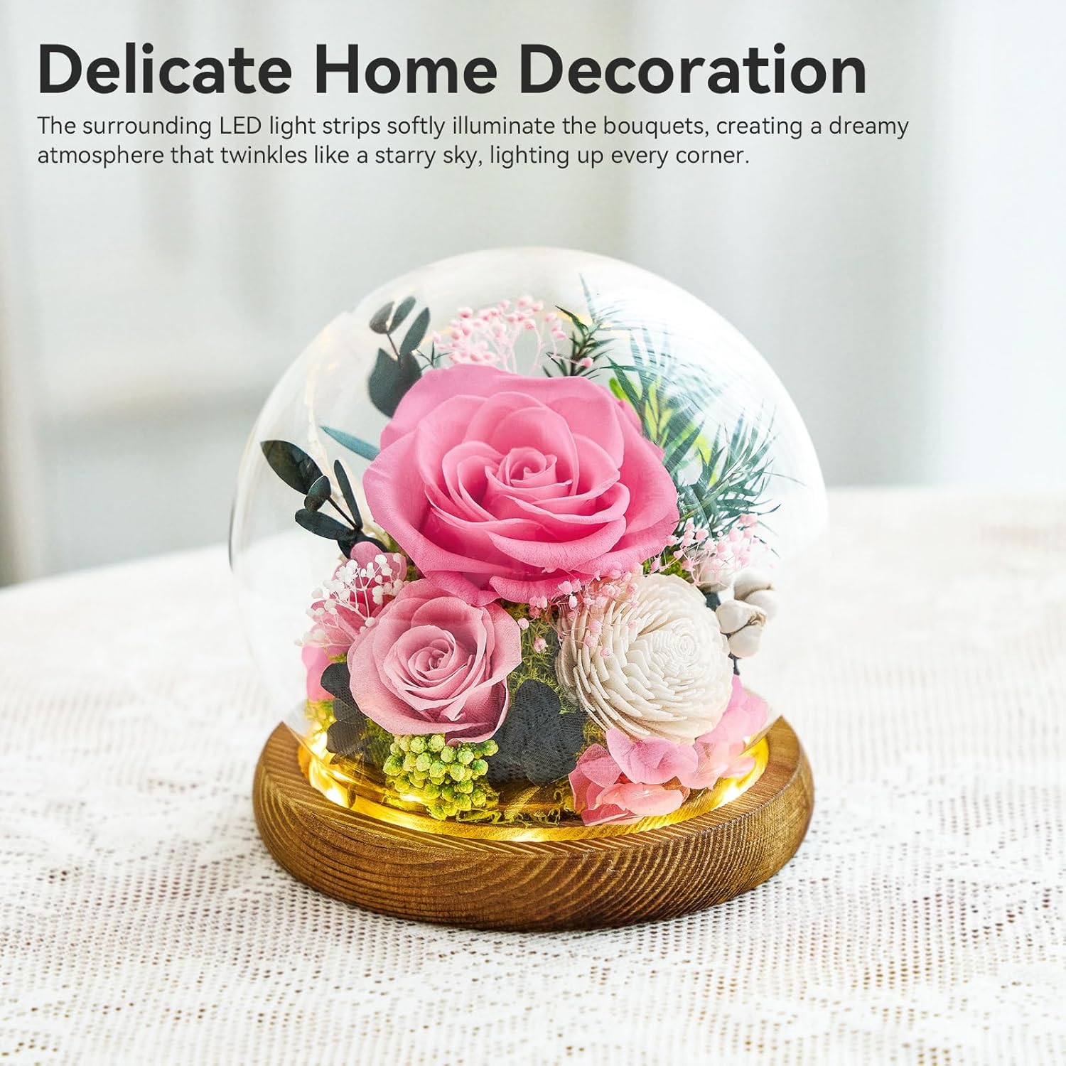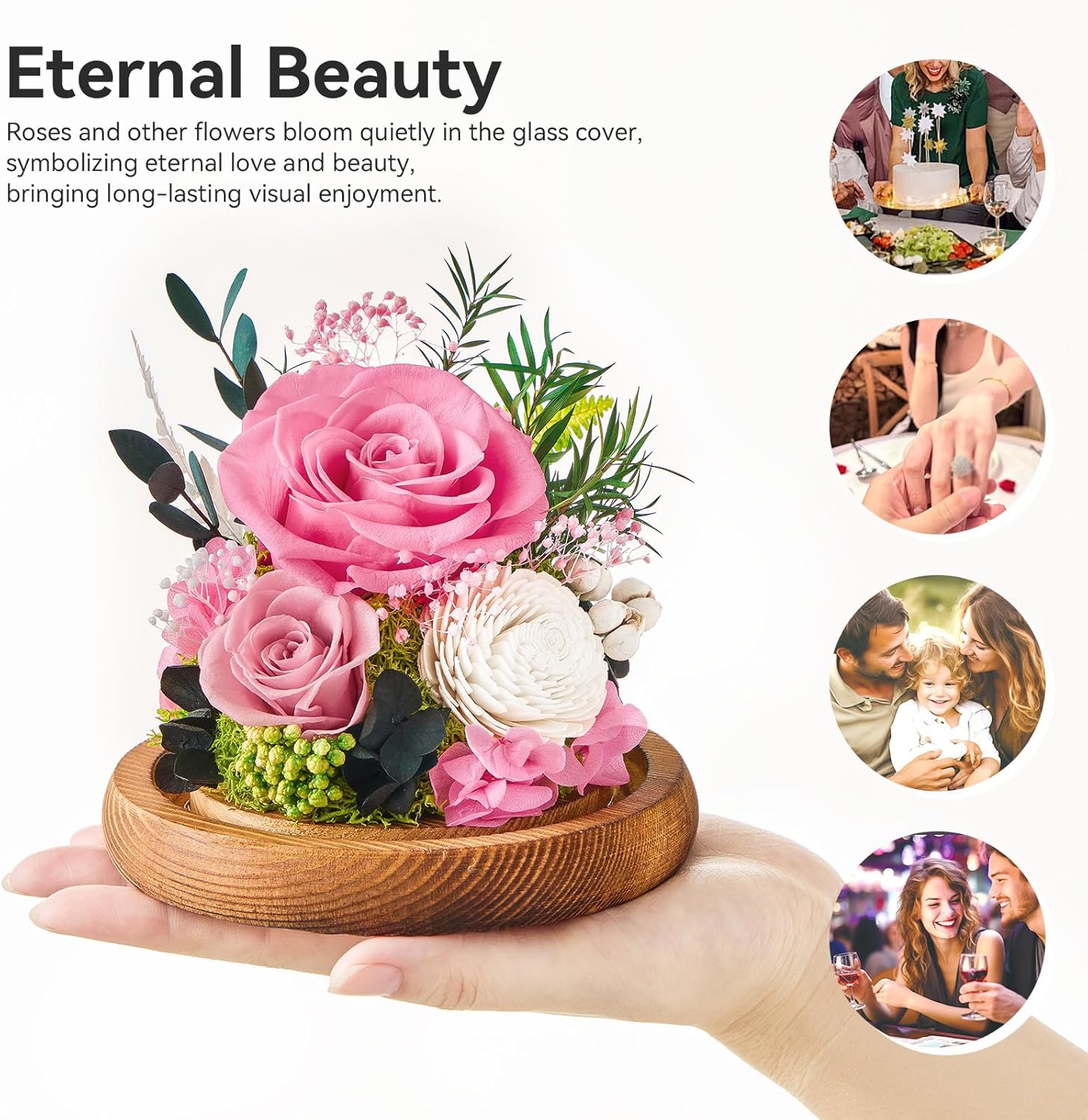 Preserved Flowers Rose Birthday Gifts for Women, Forever Flowers in Glass Ball, Long-Lasting for Mom Her Wife Grandma Anniversary Valentines (Pink)