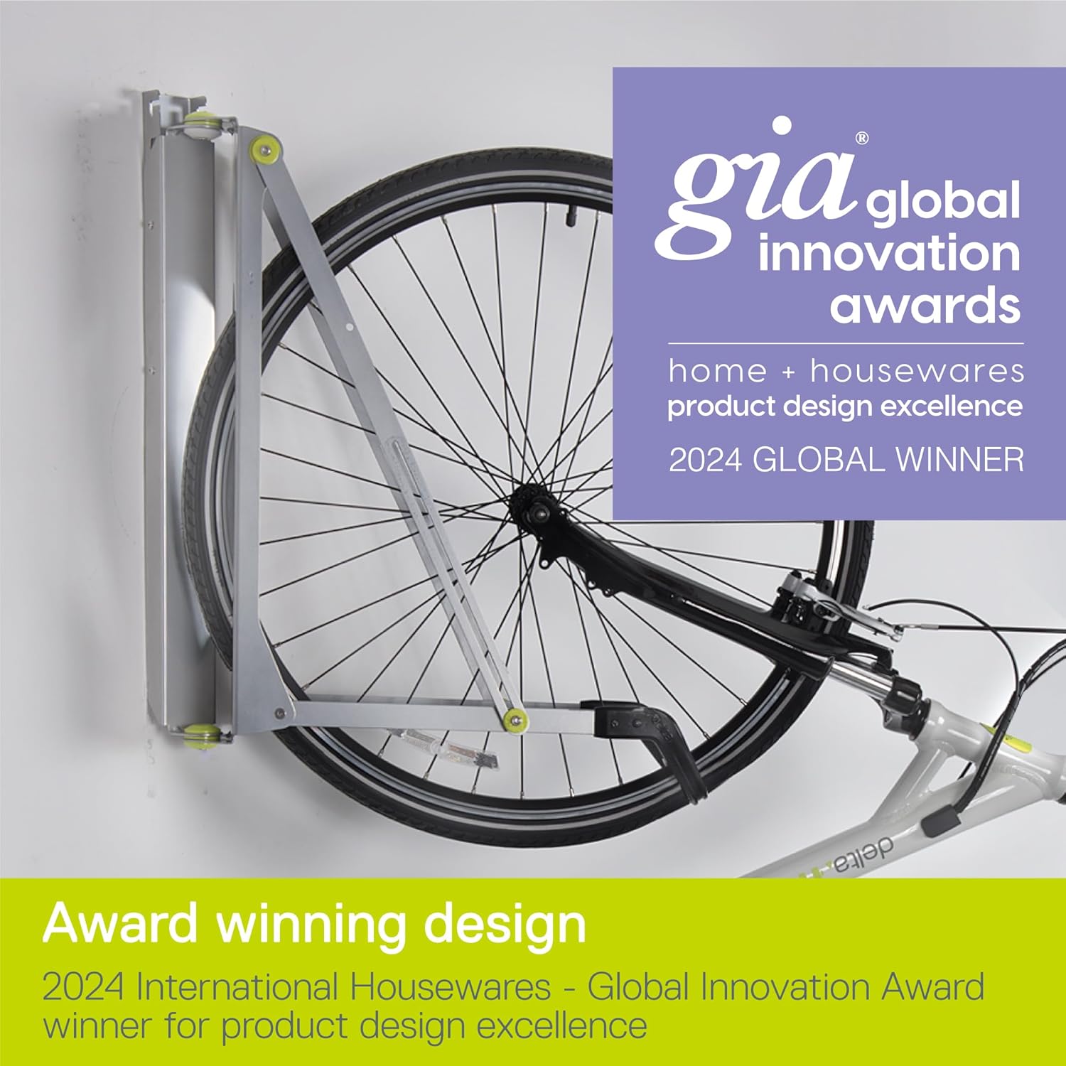 - 3-Pack Pivot Bike Rack: This garage bike rack offers a full 150 degrees of swivel in both directions, providing hassle-free access to your bikes while maximizing floor space. International Houseware Association Gia Global Innovation Award winner.