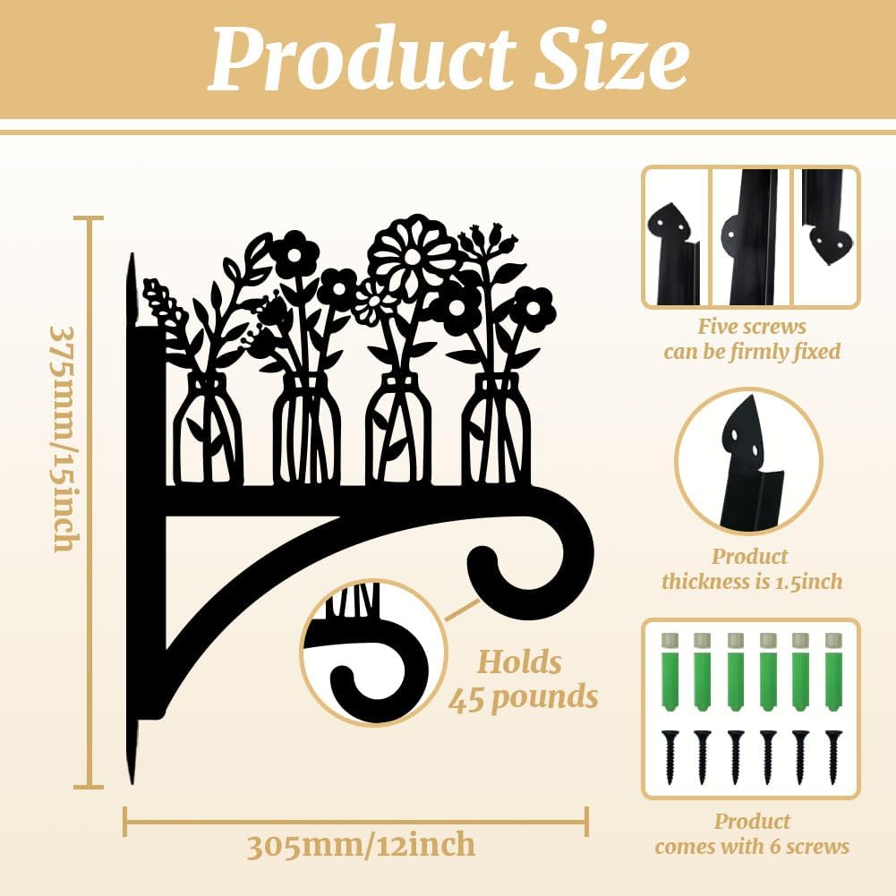 peacoblue Iron Plant Hangers Hooks for Outdoor Indoor Hanging Plants Flower Fern Pots Lantern Bird Feeder,12"x15" Weather Resistant Metal Wall Holder for Porch Garden Farmhouse(Vase and Wildflower)
