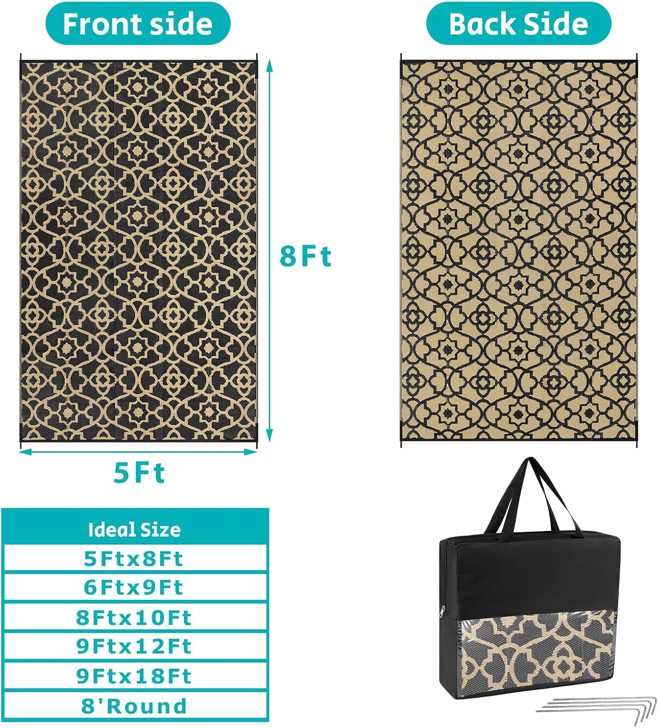 - Reversible Outdoor Rugs: Featuring a classic moroccan pattern on both sides, this rectangular 5x8 ft outdoor area rug allows you to instantly refresh your patio, porch, backyard, deck, RV campsite. And this outdoor deck rug is reversible, two-sided design allows you to have two different looks,both sides can blend perfectly with nature and look very full and comfortable.