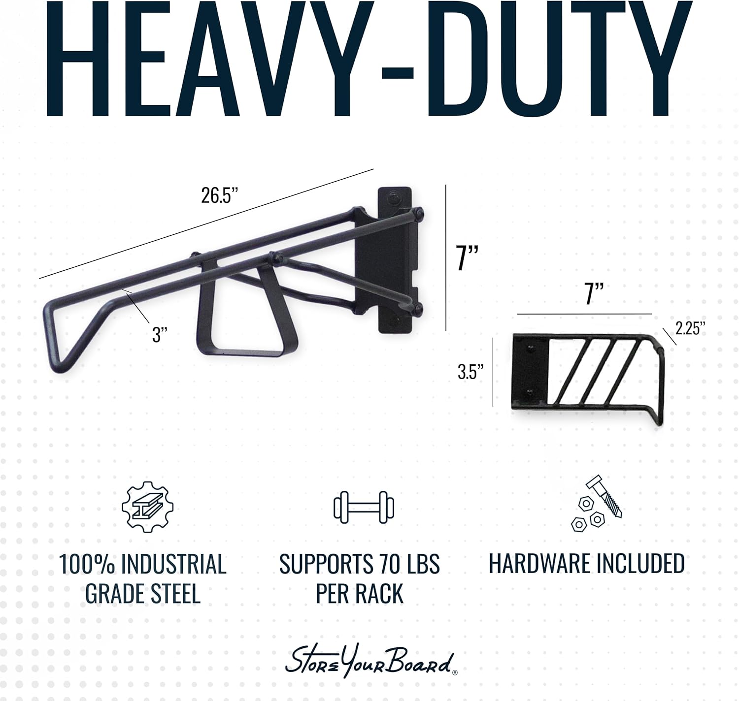 - Heavy-Duty Steel Construction: Built from industrial-grade steel with no plastic parts for durable bike organization. Each bike hanger wall mount supports up to 70 lbs, making it robust enough to store your most valuable bikes, including MTBs, e-bikes, e-mountain bikes, and more.