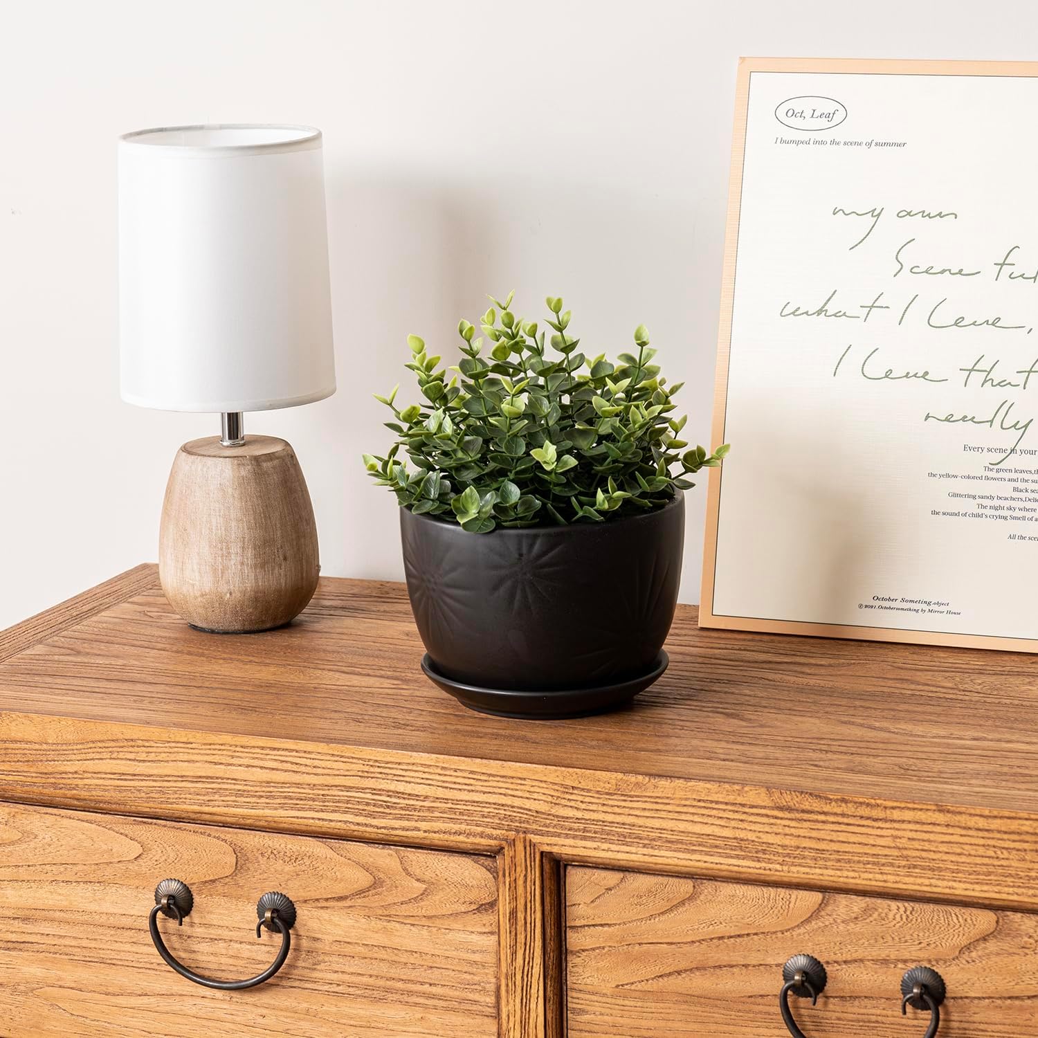 - Featuring an attached saucer to catch excess water and protect the indoor surfaces of desks, tables, and shelves, or outdoor spaces like windowsills, porches, and patio furniture