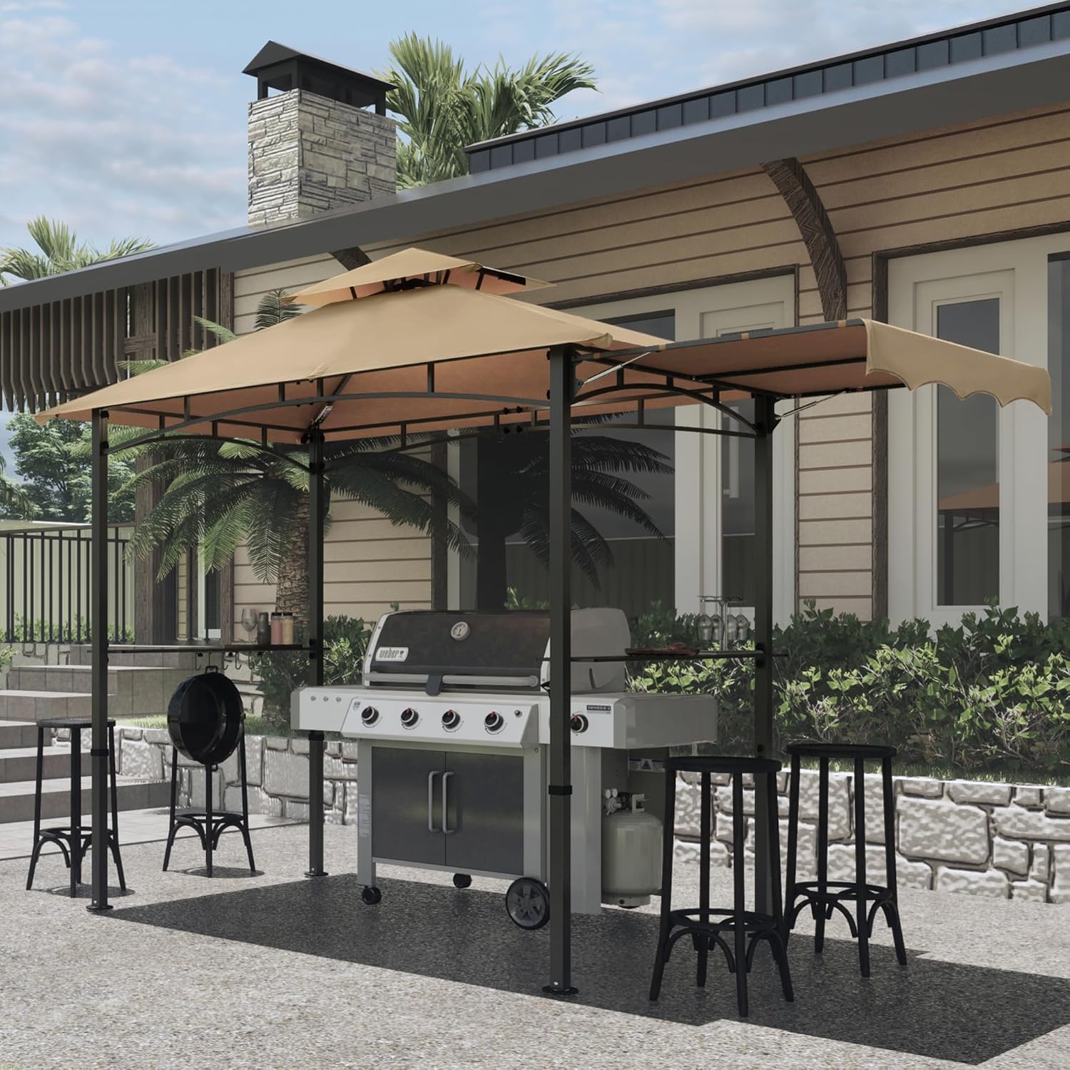 - ✅Extra Side Awning:The new upgraded grill gazebo adds an extra awning, the extra awning can increase the grilling space as well as shade the food to keep it fresh, it also provides better rain protection for people and food.