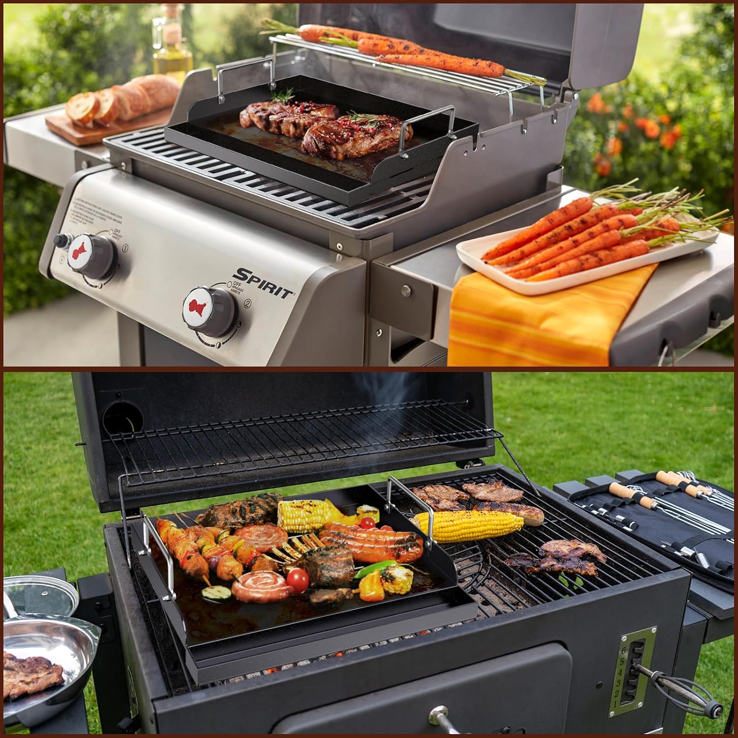 - 【Advanced Nano-Ceramic Coating & Superior Durability】 Featuring cutting-edge Nano-Ceramic coating, this griddle offers exceptional scratch resistance and non-stick performance, even under high heat. The thick ceramic layer distributes heat evenly, ensuring perfectly cooked meals every time while maintaining its appearance and durability even with extended use. Cleaning is a breeze – simply brush off any excess food residue and wipe with a soft sponge and mild detergent -Perfectly fit for Weber Spirit 2025 Edition, for Weber E-425 Gas Grill