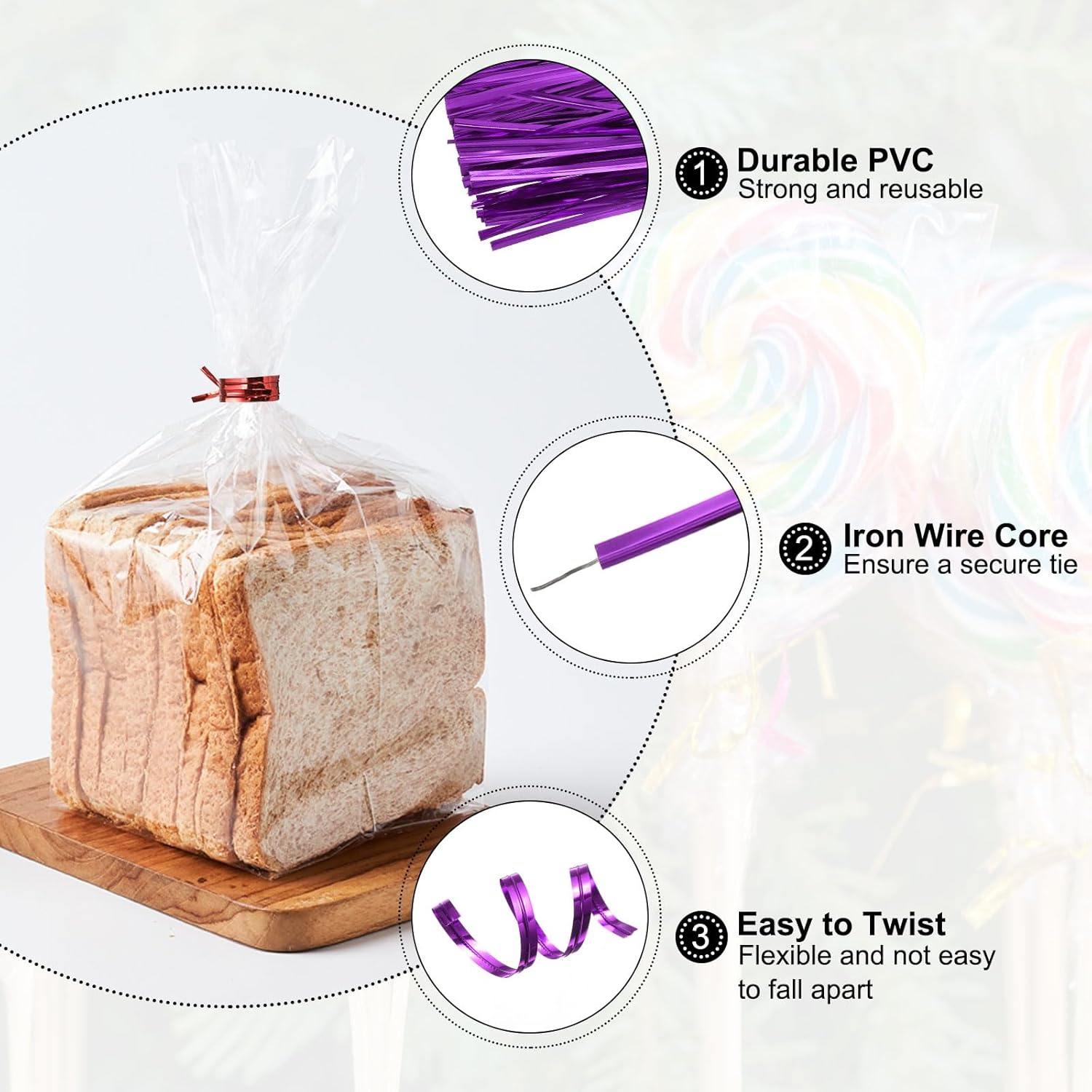 HARFINGTON 800pcs Bag Twist Ties 4.7" Reusable Plastic Metallic Twist Ties Wire Cable Ties for Party Bread Candy Cake, Purple