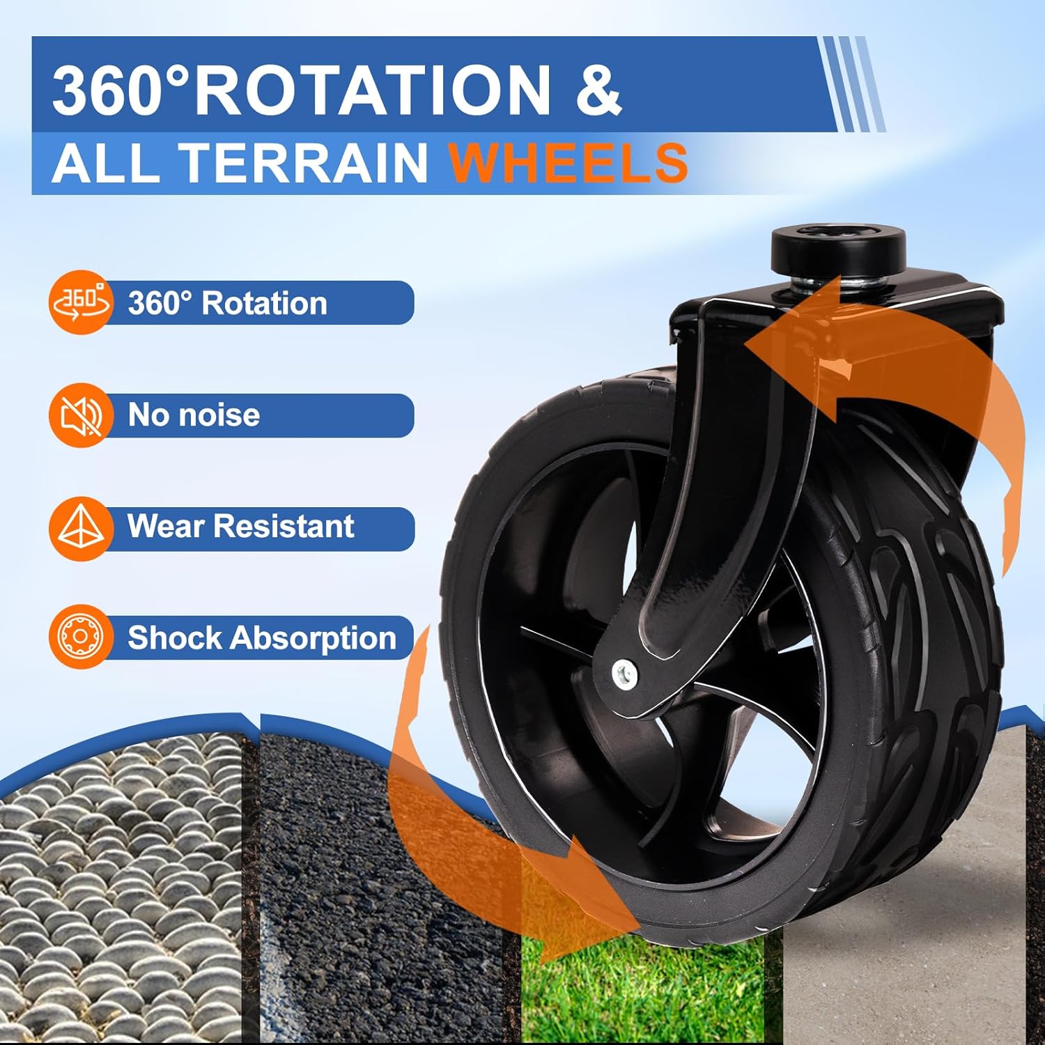 - FLEXIBLE MOBILITY-WAGONS CARTS FOLDBLE: Imagine the feeling of unimpeded travel, which our high-quality PVC wheels can bring you, the front wheel can rotate 360 degrees, even the muddy road can not stop. The cart with wheels adjustable handle can not only go up and down, the Angle can be changed at any time, the shopping cart like your dance partner, always follow your footsteps