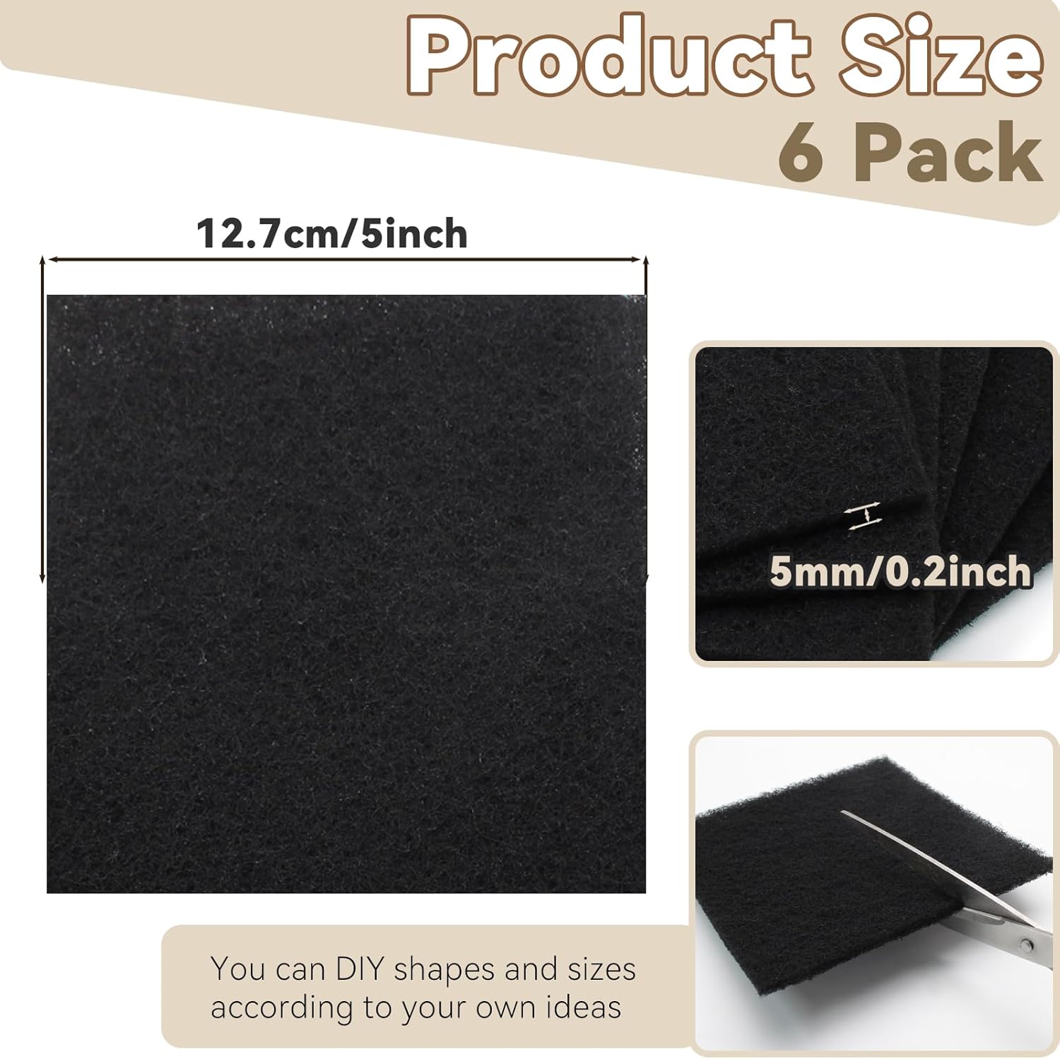 Biaungdo 6 Pack 5 Inch Sqaure Charcoal Filter Replacements, Black Kitchen Compost Bin Filters for Countertop Square Carbon Filter Bin Pail Replacement