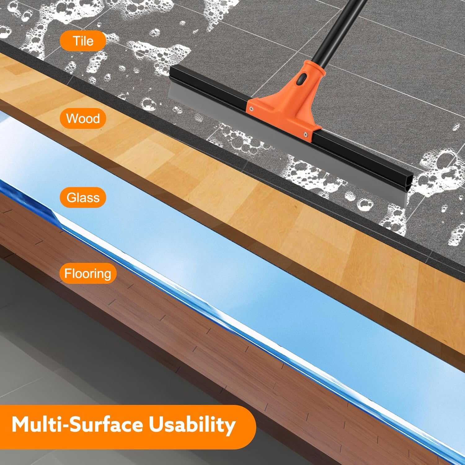- Multifunctional Application: Our squeegee floor suitable for a variety of floor materials, including tiles, wooden floors, concrete, carpet edges, etc. Squeegee is suitable for cleaning garages, tiles, decks, bathrooms, kitchen floors, and can meet the needs of families and professionals