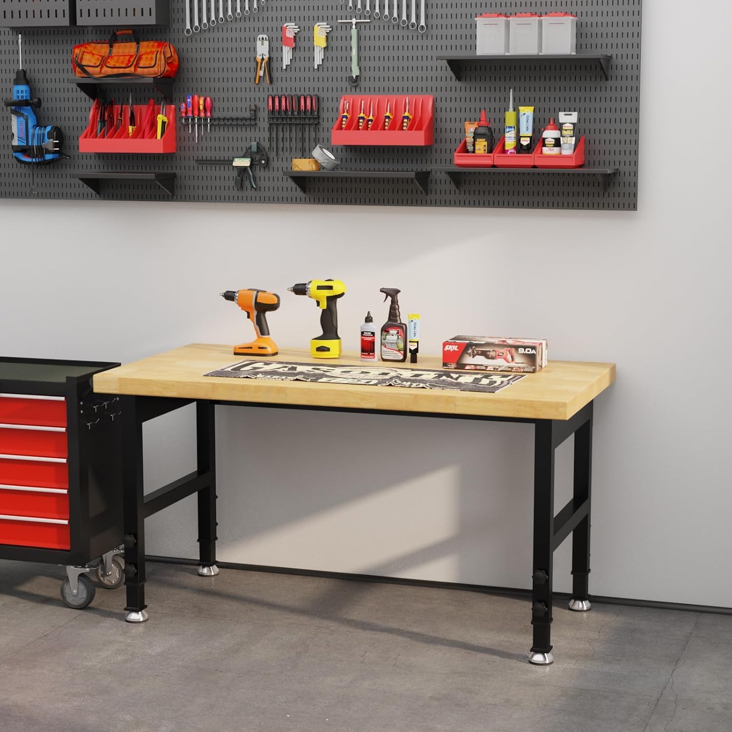 48" Work Bench, Adjustable Height Workbench, Heavy-Duty Thicker Work Table, 2000 LBS Load Capacity Workstation for Garage, Workshop, Office, Home