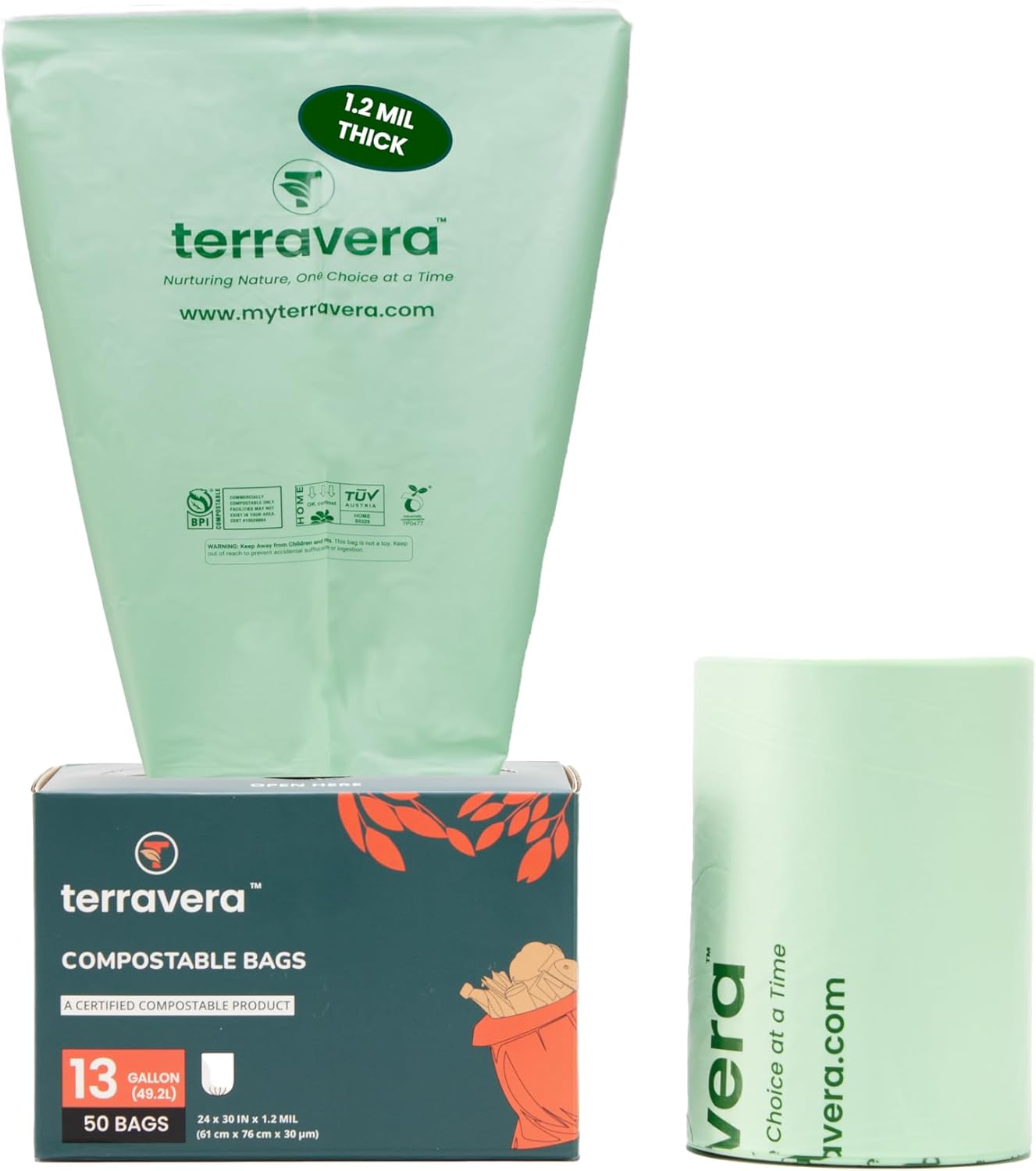- ECO-FRIENDLY CHOICE: terravera bags are BPI and OK Home certified & 100% compostable bags, decompose completely within 180 days