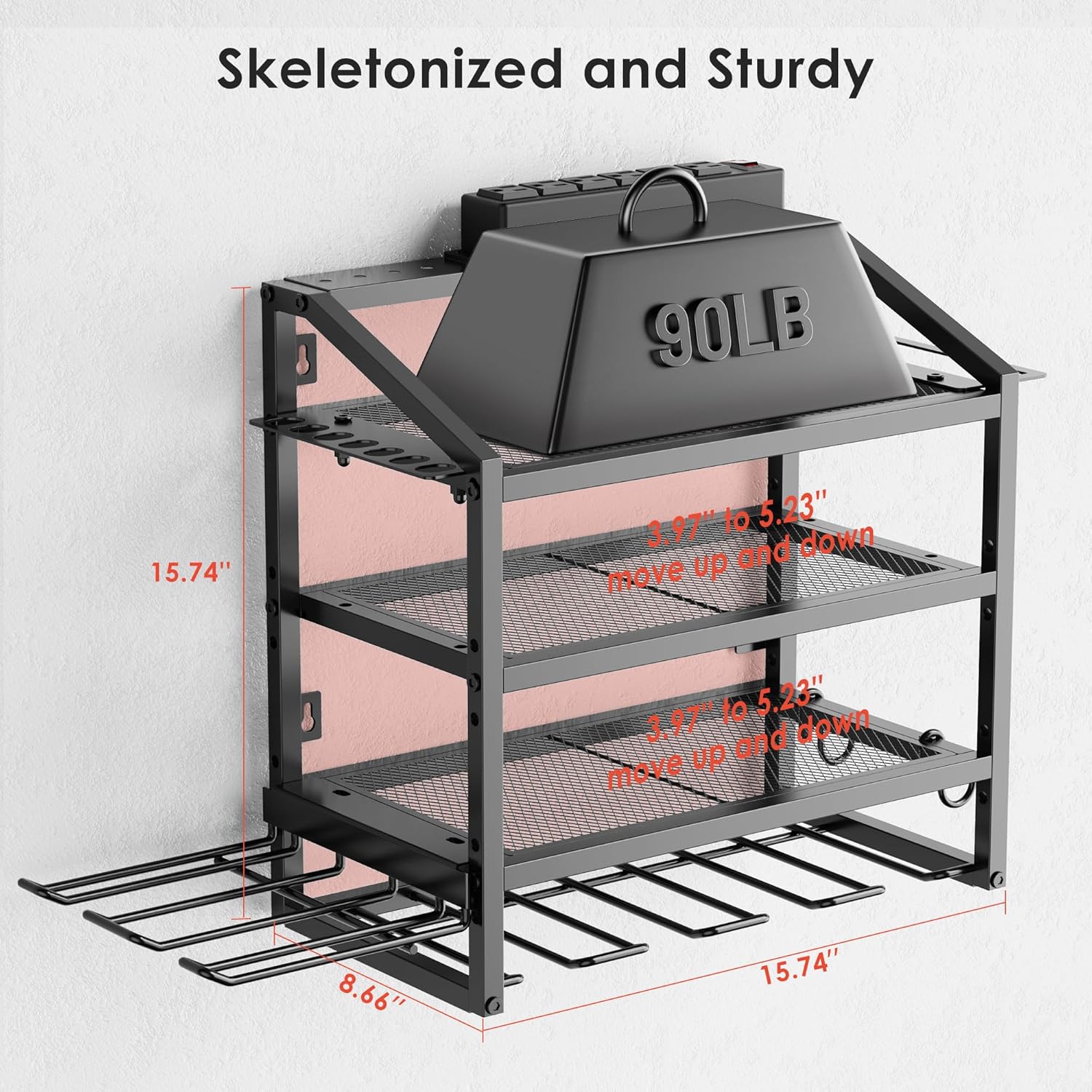 - Drill Holder Wall Mount: Easily hang the tool rack on different walls, such as wall control pegboard, concrete, brick, wood wall, etc., the size of this tool organizer wall mount is 15.75*15.75*8.66 inch, but the skeletonized design allows the tool holder to store longer items.