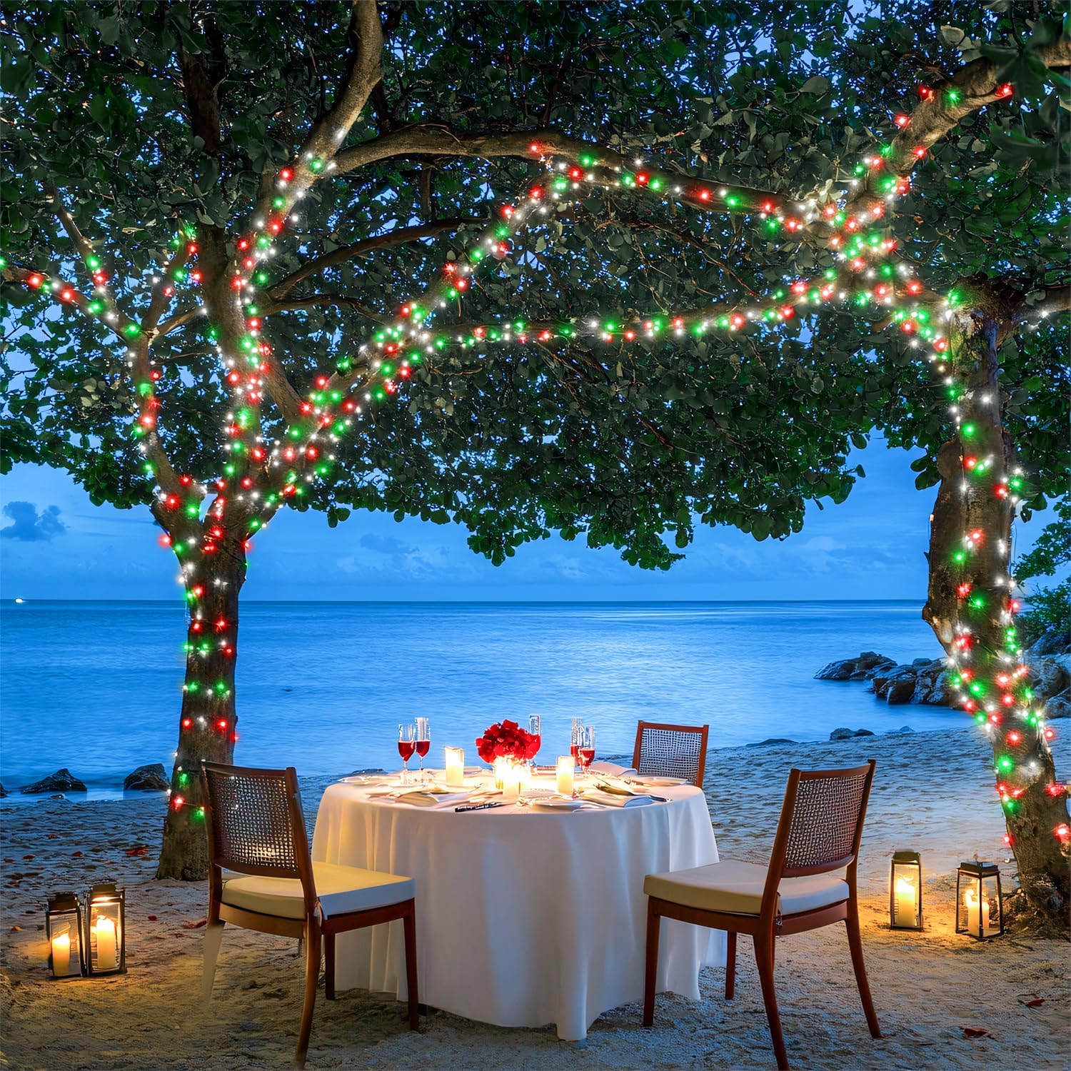 - ăRed White and Green Christmas LightsăOur Outdoor Christmas decor lights use higher brightness LED bulbs, while the plug power supply greatly improves the stability of the bulb brightness, making each of our LED bulbs shine 360 degrees, providing you with a constant crystal clear glow! These Plug in Twinkle lights are very warm, soft, and non-dazzling, adding a classic and charming glow to your Christmas decorations.
