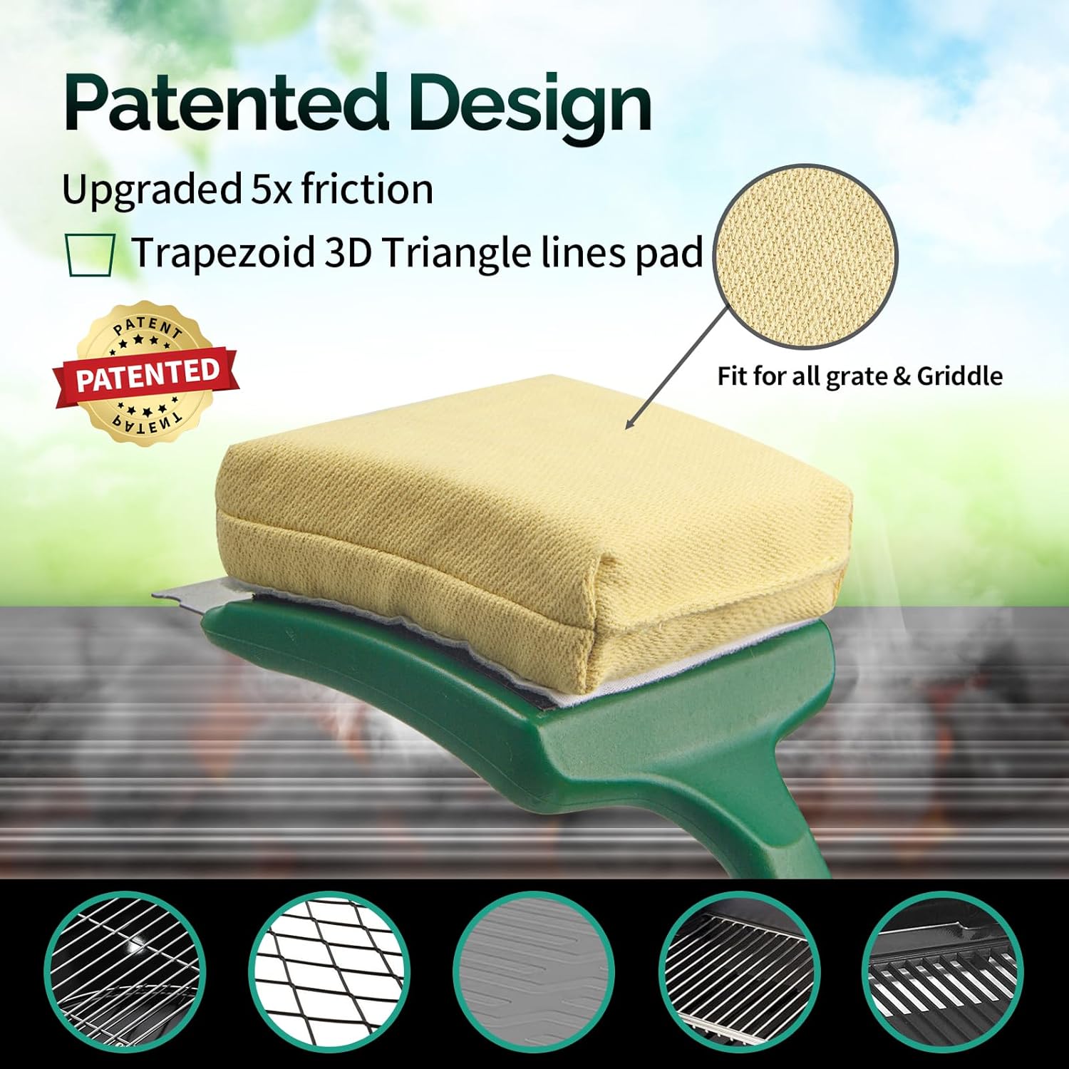 - 【Safest Steam Brush 】With a safe heat-resistant Aramid Fiber Triangle Lines Pad ,(Patent Pending)There are no dangerous wire bristles or spikes to break off and get into the food.Dipped the brush in water,cleans with steam,The carbonized residue vaporized in a puff of steam.