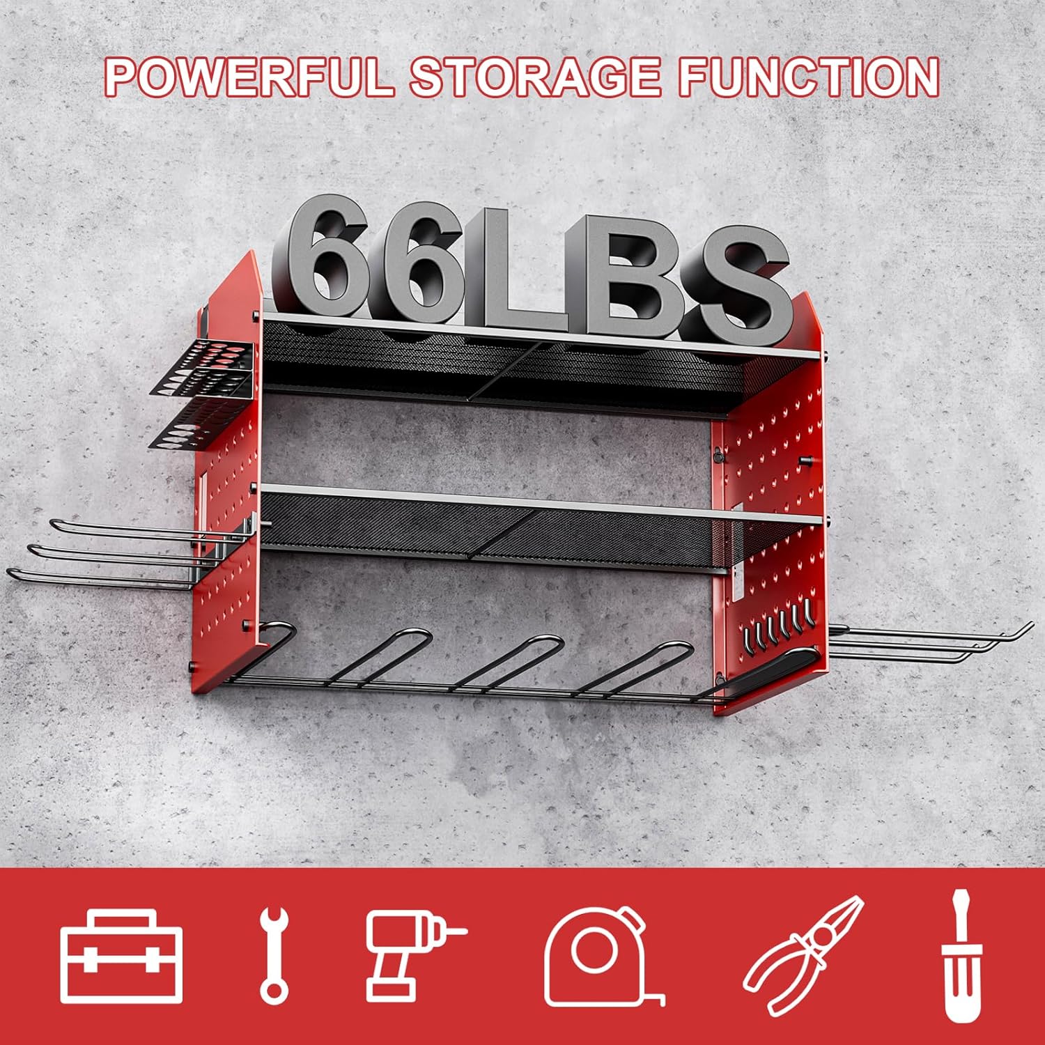 - Maximizes Space Utilization: Pegboard design allows you to adjust the height of the tool layers to accommodate items of various sizes, optimizing the tool rack's space utilization and making every inch in your garage count