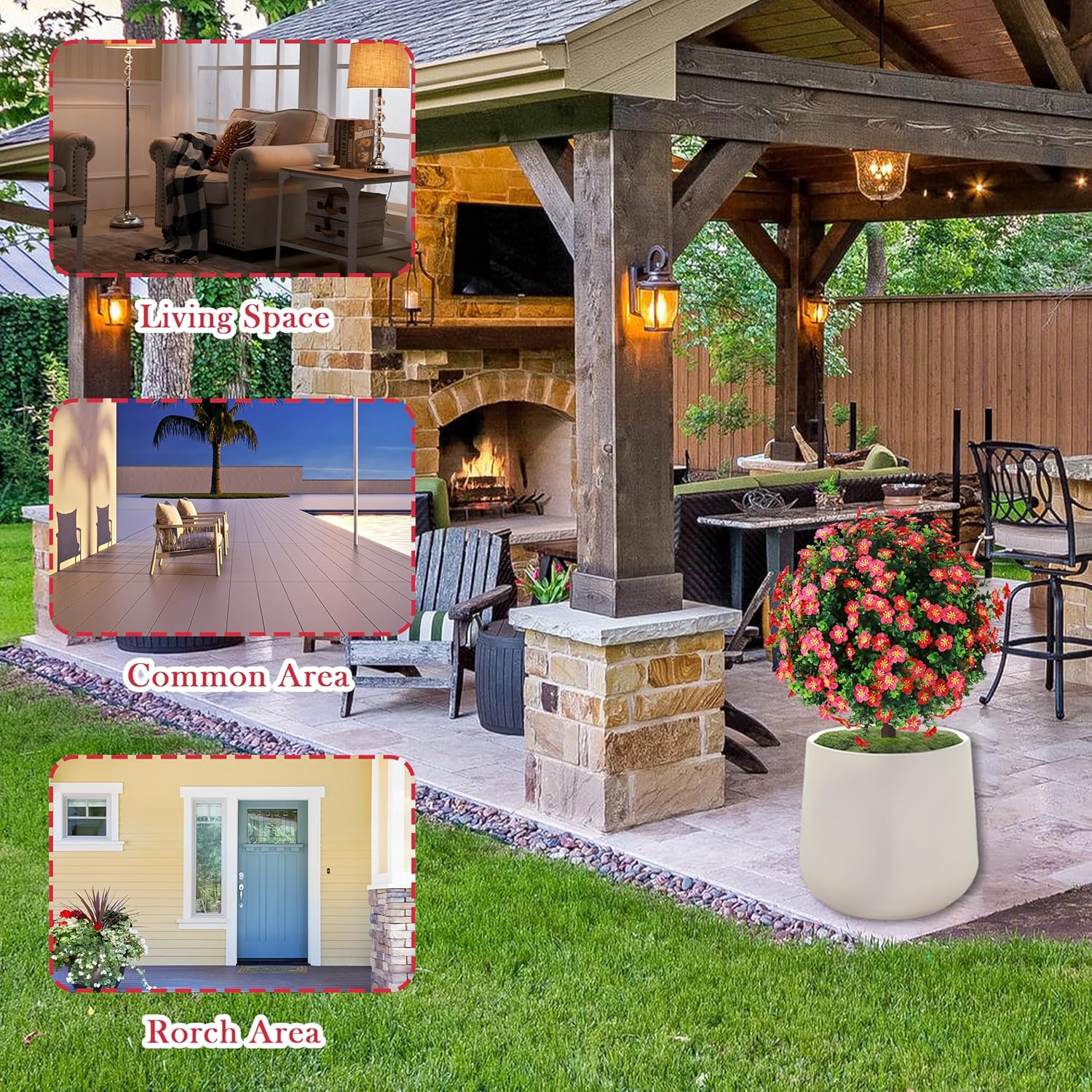 - 【Vibrant Artificial Plant Decor】Elevate your home's visual appeal with our faux boxwood topiary ball trees with red blossoms. And each realistic bush comes with a sturdy black ground stake, enabling you to position it in ornamental containers or insert it directly into the earth. Its sophisticated appearance brings a aature's vitality to any environment.
