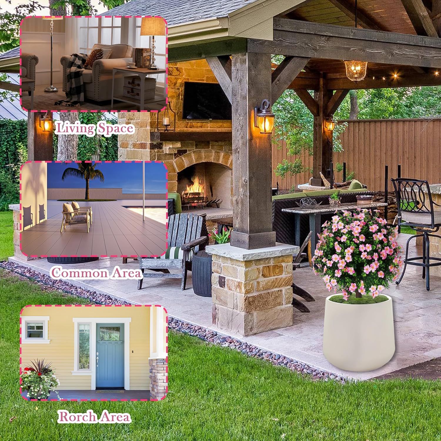 - 【High Quality & Appearance Design】Constructed from premium UV-resistant polyethylene material, this synthetic plant boasts lush foliage with natural colors. The solid trunk with lifelike texture that resists fading and damage, allowing the plant to maintain its vivid appearance even in harsh outdoor conditions.