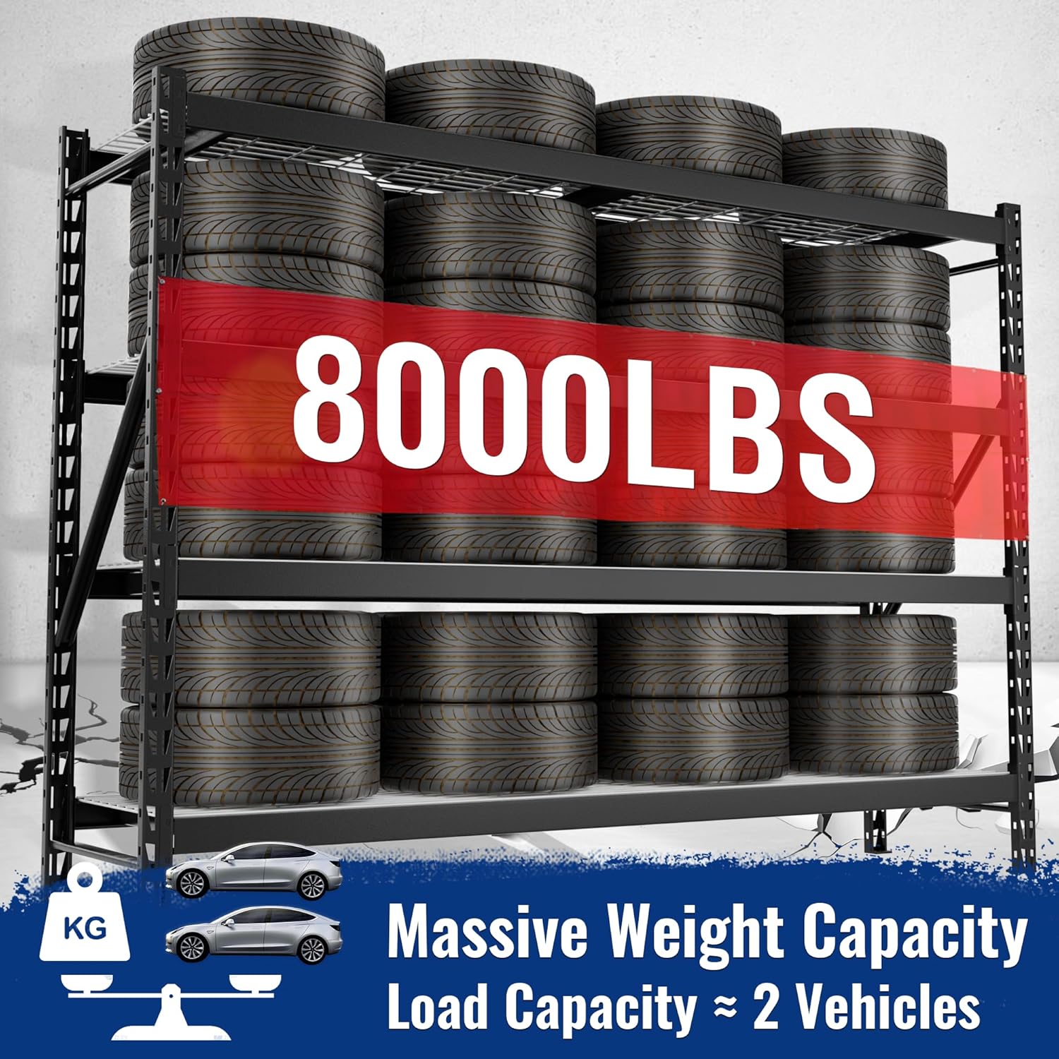 - ă8000LBS Heavy-Duty CapacityăThis garage shelving supports up to 2000 lbs per shelf, totaling 8000 lbs.Built with welded steel and reinforced beams, itâs perfect for storing heavy loads.
