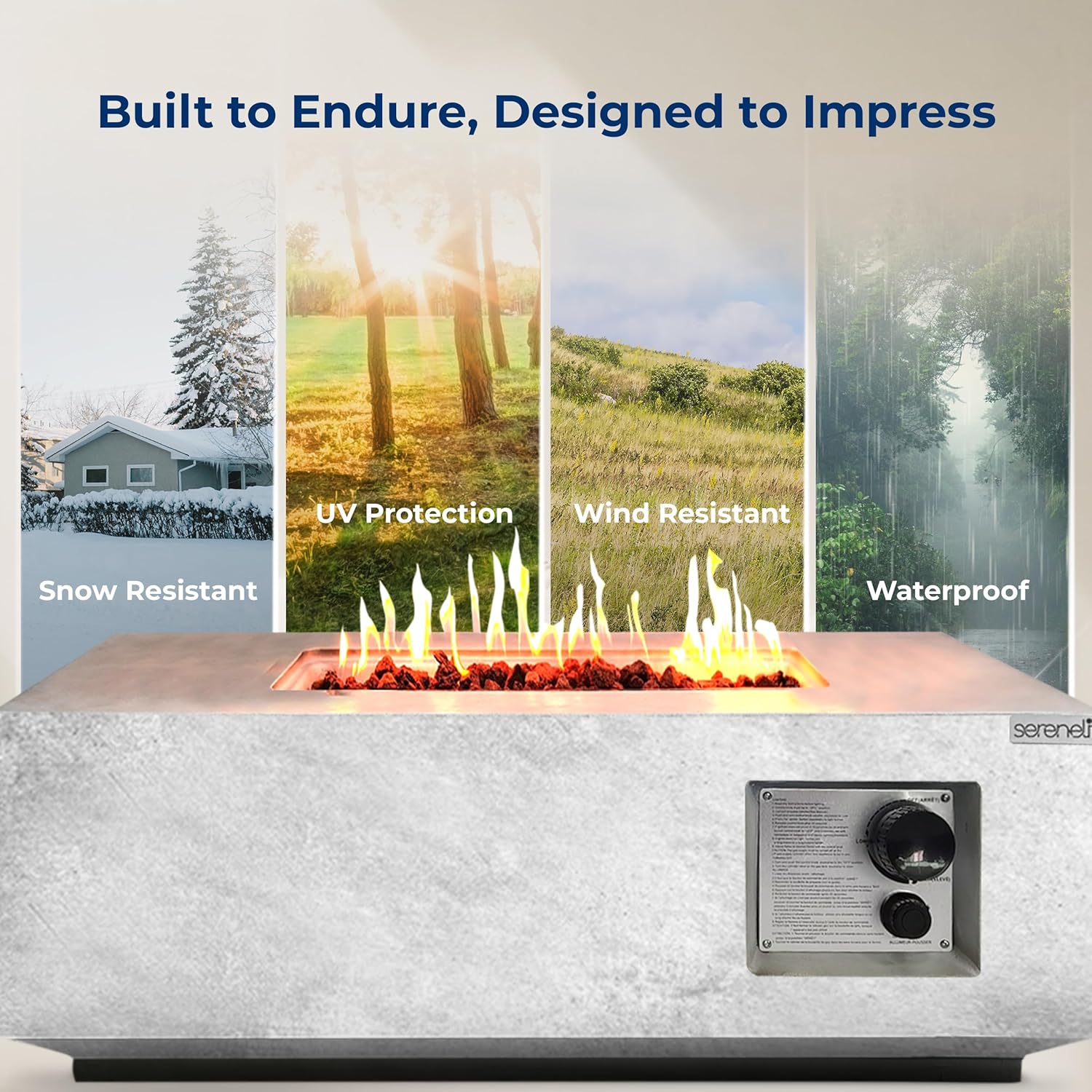 - DURABLE WEATHER-RESISTANT BUILD - Crafted with durable metal and MGO, this propane fire pit table is weather-resistant, ensuring style and reliability season after season. Built to handle outdoor elements while keeping its sleek design.