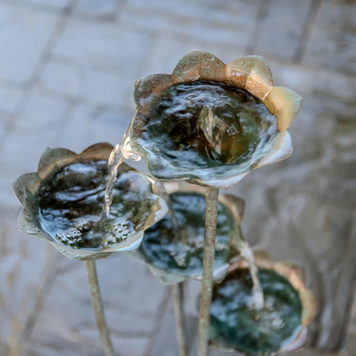- FLOWER CASCADING DESIGN: Elevate your outdoor space with XBrand's freestanding multi-tiered flower fountain, standing an impressive 35 inches tall. This waterfall fountain showcases a stunning cascading design with multiple flowers creating a seamless cascading waterfall . Its elegant structure not only serves as an eye-catching outdoor water feature but also adds tranquility to your environment.
