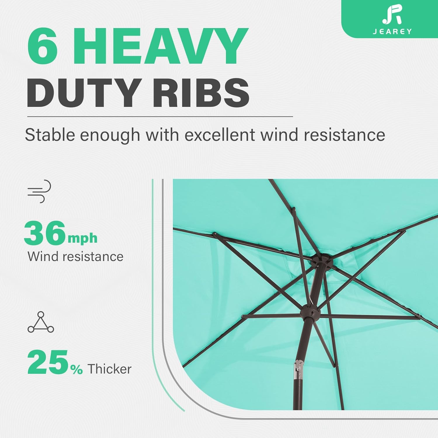 JEAREY 6.5x10 ft Rectangular Patio Umbrellas Outdoor Market Umbrella with Push Button Tilt and Crank, Rectangle Table Umbrella 6 Sturdy Ribs UV Protection for Pool Garden Backyard Deck, Aqua Sky