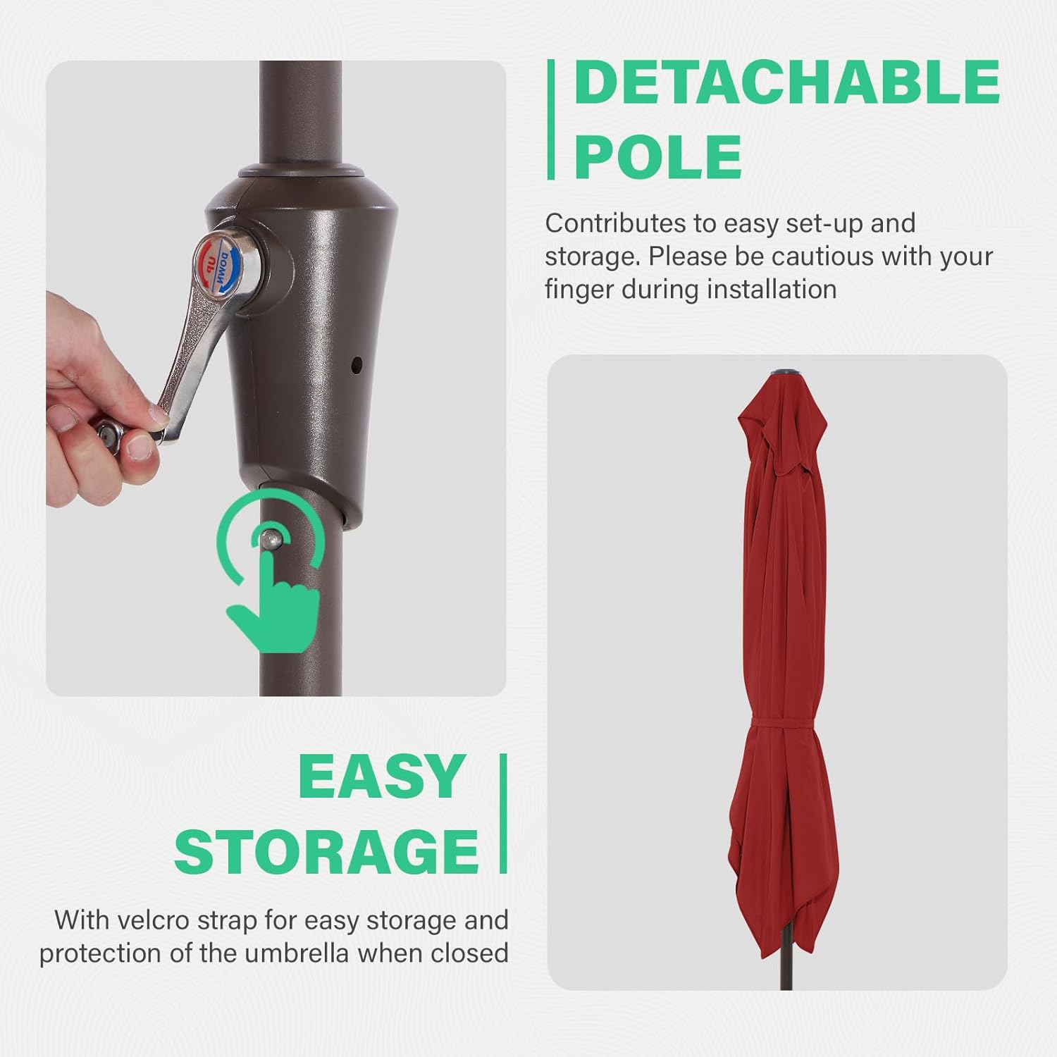 - ăNOTEă- This garden umbrella does NOT include the base shown, please purchase separately. Please refer to the product installation video to assemble.If you have any problems during the use of the table umbrella, please contact our at any time
