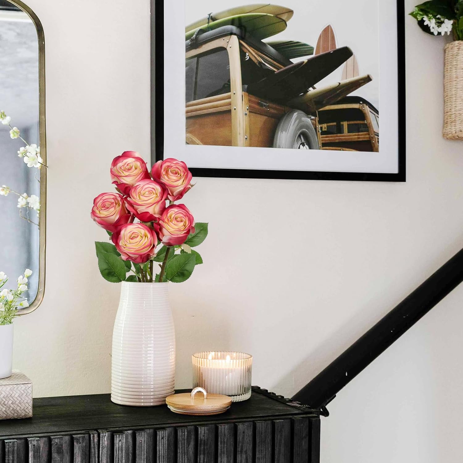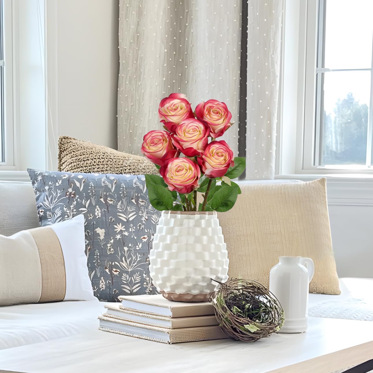 - 6 Full Blooms per Set: This set includes 6 individually crafted faux roses, offering a full and balanced arrangement for your space. The vibrant color and rich texture make them ideal artificial roses flowers for centerpieces, floral walls, or seasonal home updates.