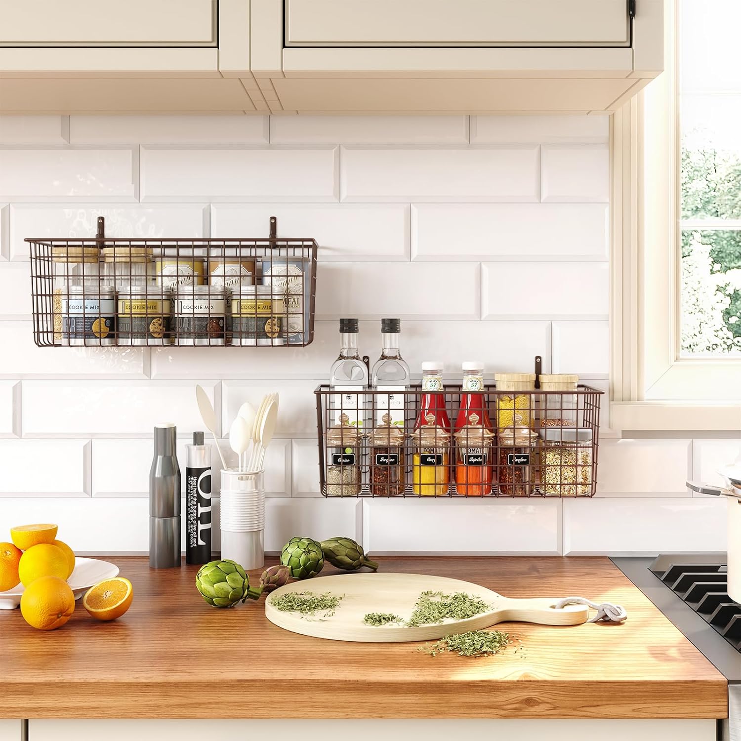 - Neat and Space Saving Organizer: They are ideal wall mounted storage baskets for home decor clearance, pantry, kitchen, cabinet, door, bathroom, bedroom, laundry,, closet, craft rooms, garage, office , farmhouse and more. You can also put it on sink, counter and other table tops. Make your storage double as dΓ©cor for a streamlined and organized home.