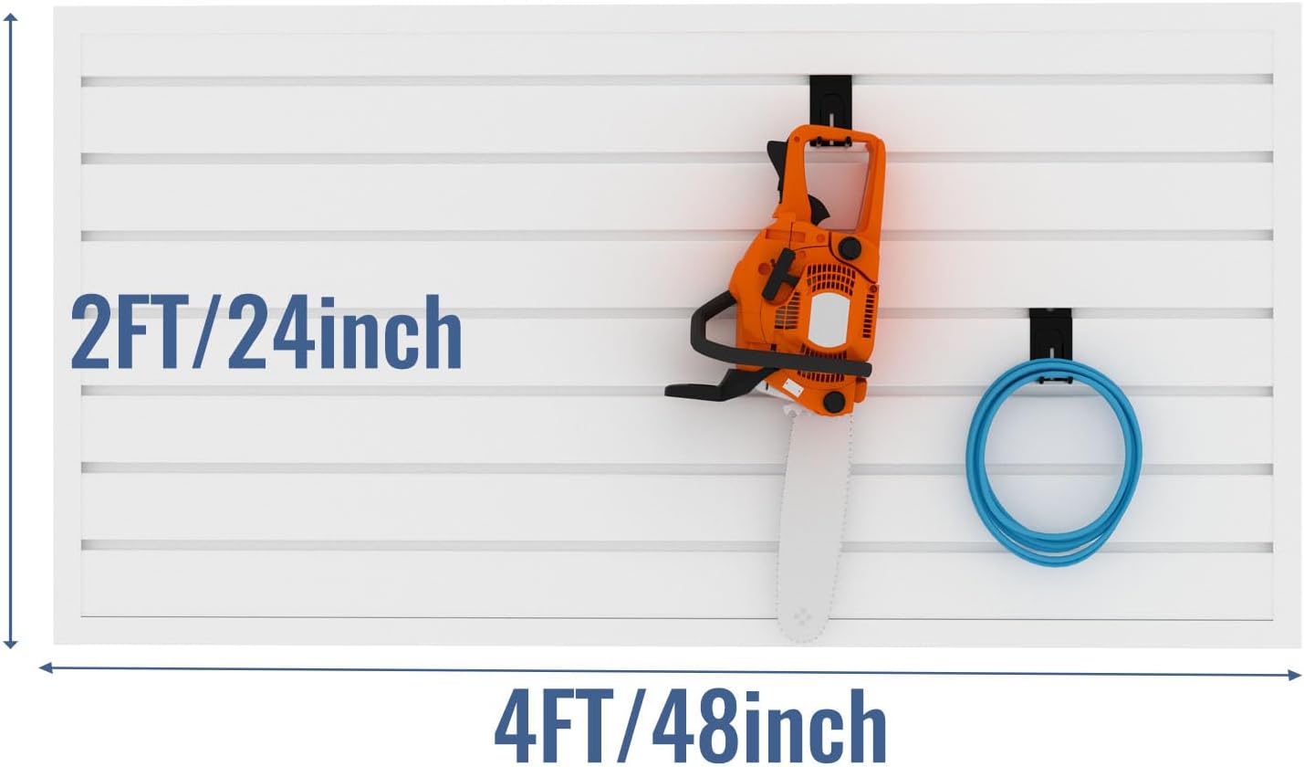 - MAXIMIZE SPACE USAGE: Transform your garage into a sleek, organized haven with our PVC slat wall panel. Efficiently utilize vertical space, creating a clutter-free environment that optimizes every inch.