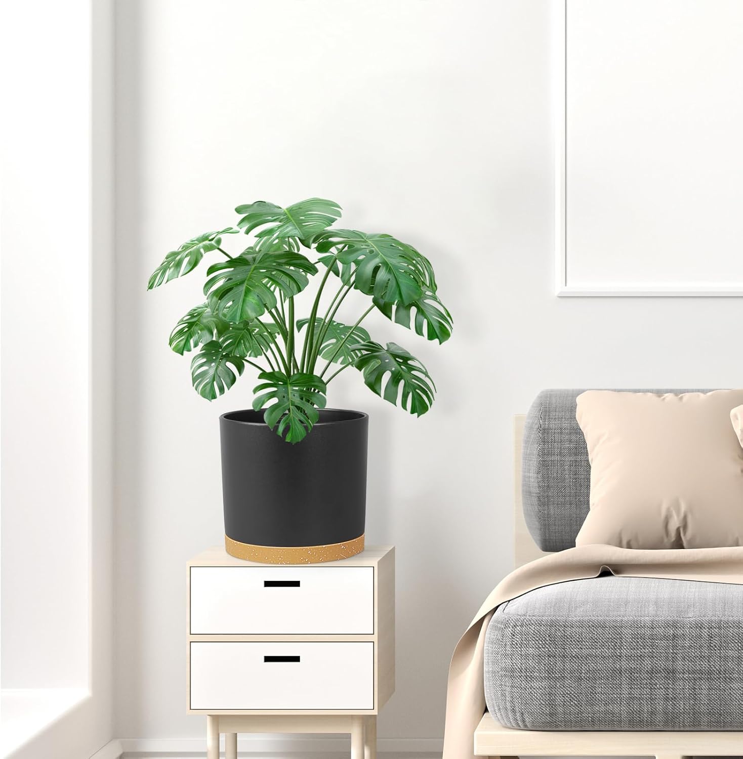 - 【Depth & Large】 10 inch large indoor plant pot with Dia: 10 in, Height: 10.6 in, tall plant pots with black with brown provide enough space to accommodate a variety of plants, offering flexibility for small to medium-sized greenery and flowers