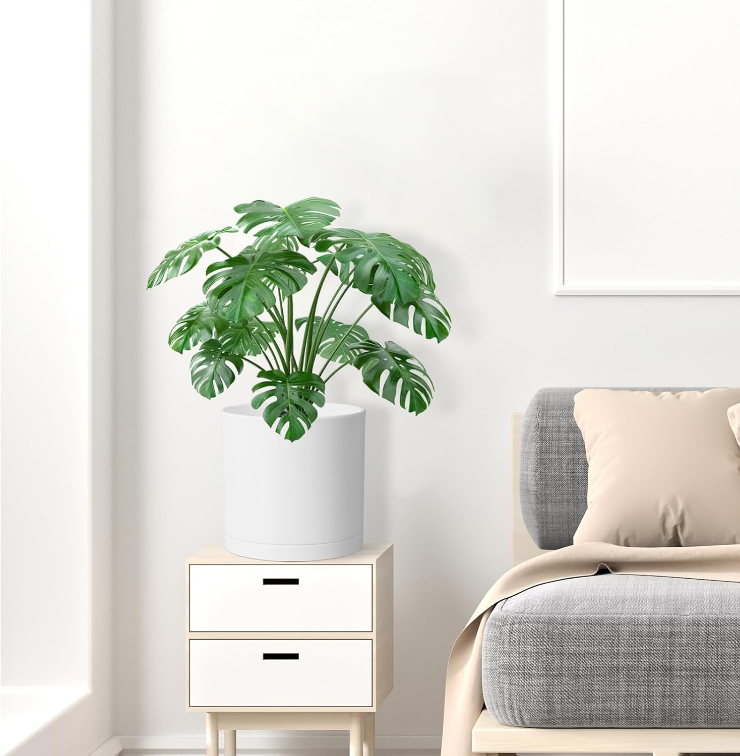 - 【Depth & Large】 10 inch large indoor plant pot with Dia: 10 in, Height: 10.6 in, tall plant pots with white color provide enough space to accommodate a variety of plants, offering flexibility for small to medium-sized greenery and flowers