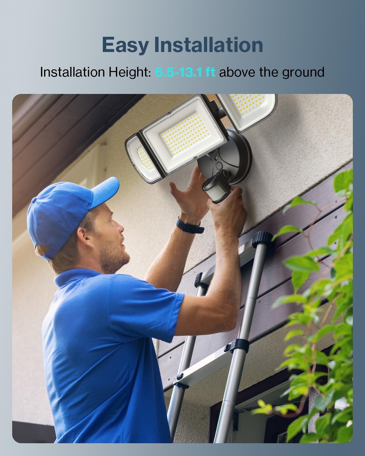- Built to Last: With an IP65 waterproof rating, these motion detected lights withstand any weather – rain, snow, extreme temperatures, ensuring reliable performance year-round.