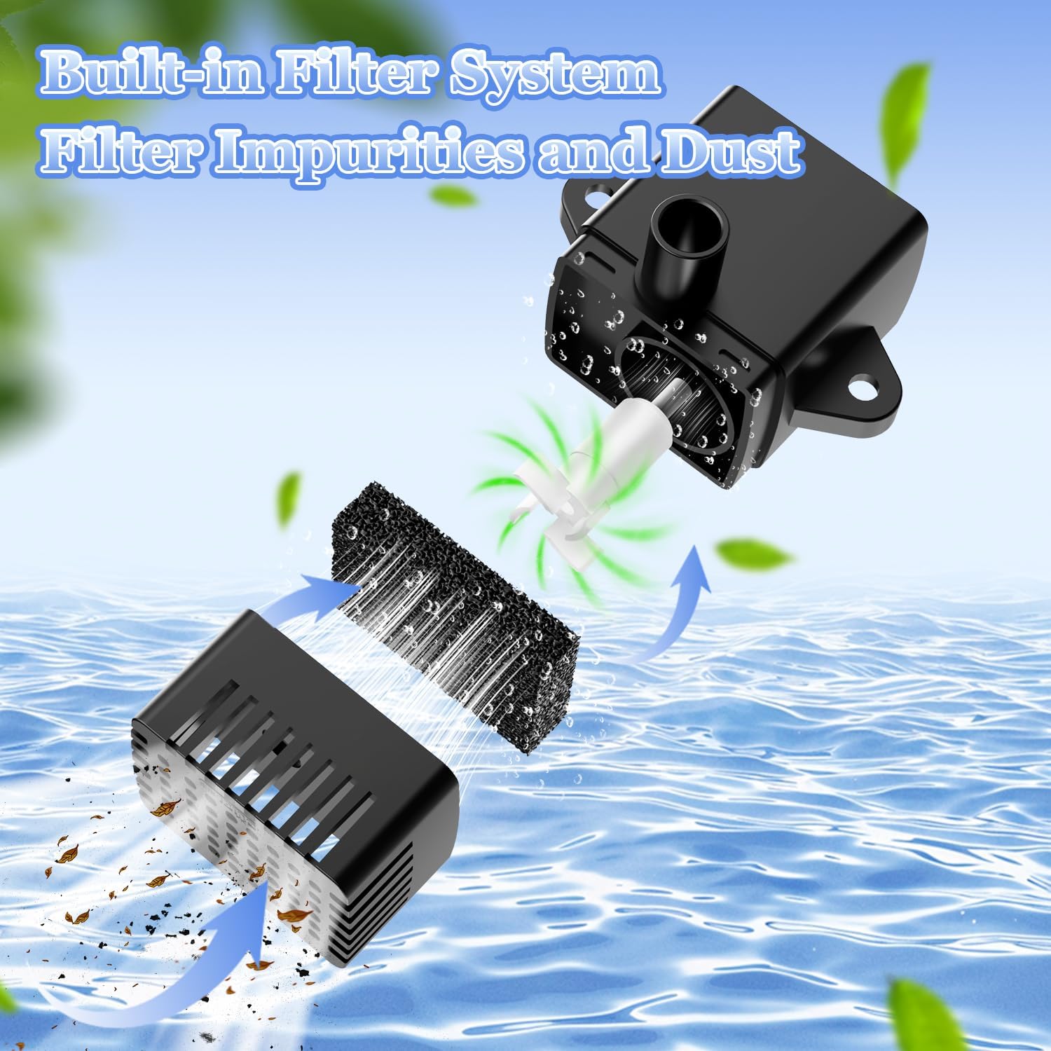 - Water Shortage Protection System & Blocking Protection System:The water shortage protection system automatically stops the pump from running when water levels are too low, preventing damage to the pump and conserving energy. Filter sponge can effectively filter to prevent clogging These built-in protection systems provide peace of mind and convenience for users, allowing you to enjoy your solar fountain without worrying about potential issues such as water shortage or blockages. Our product is designed with your convenience and satisfaction in mind