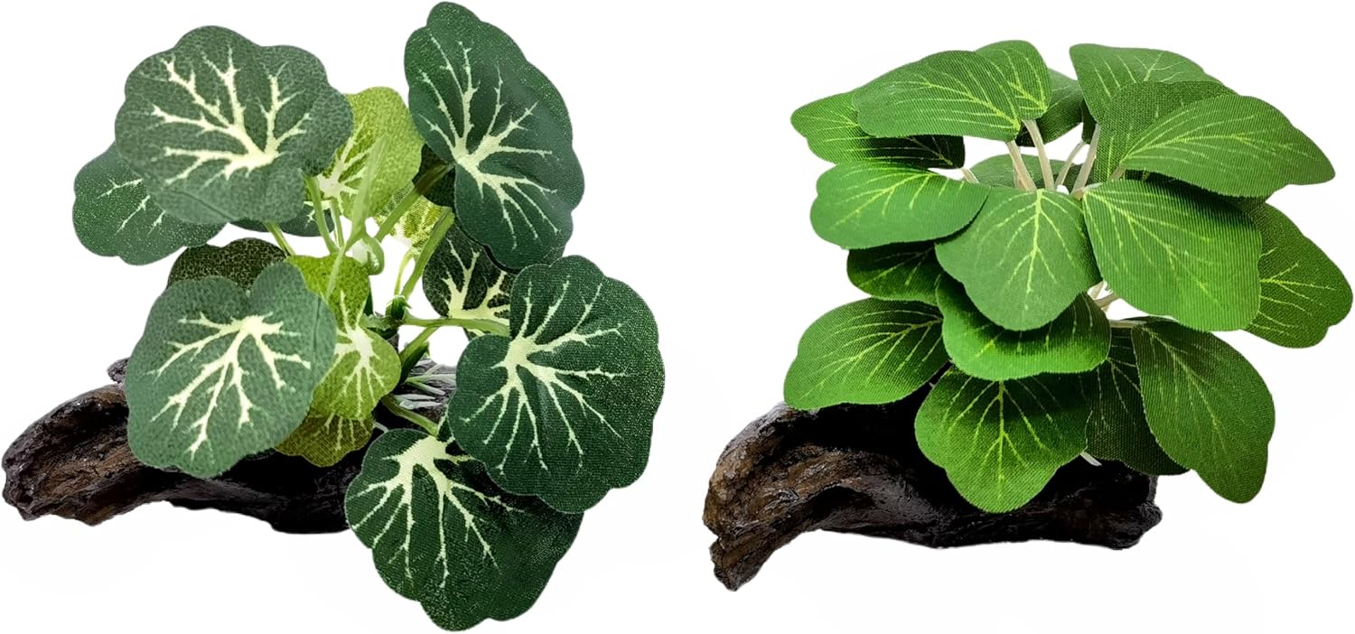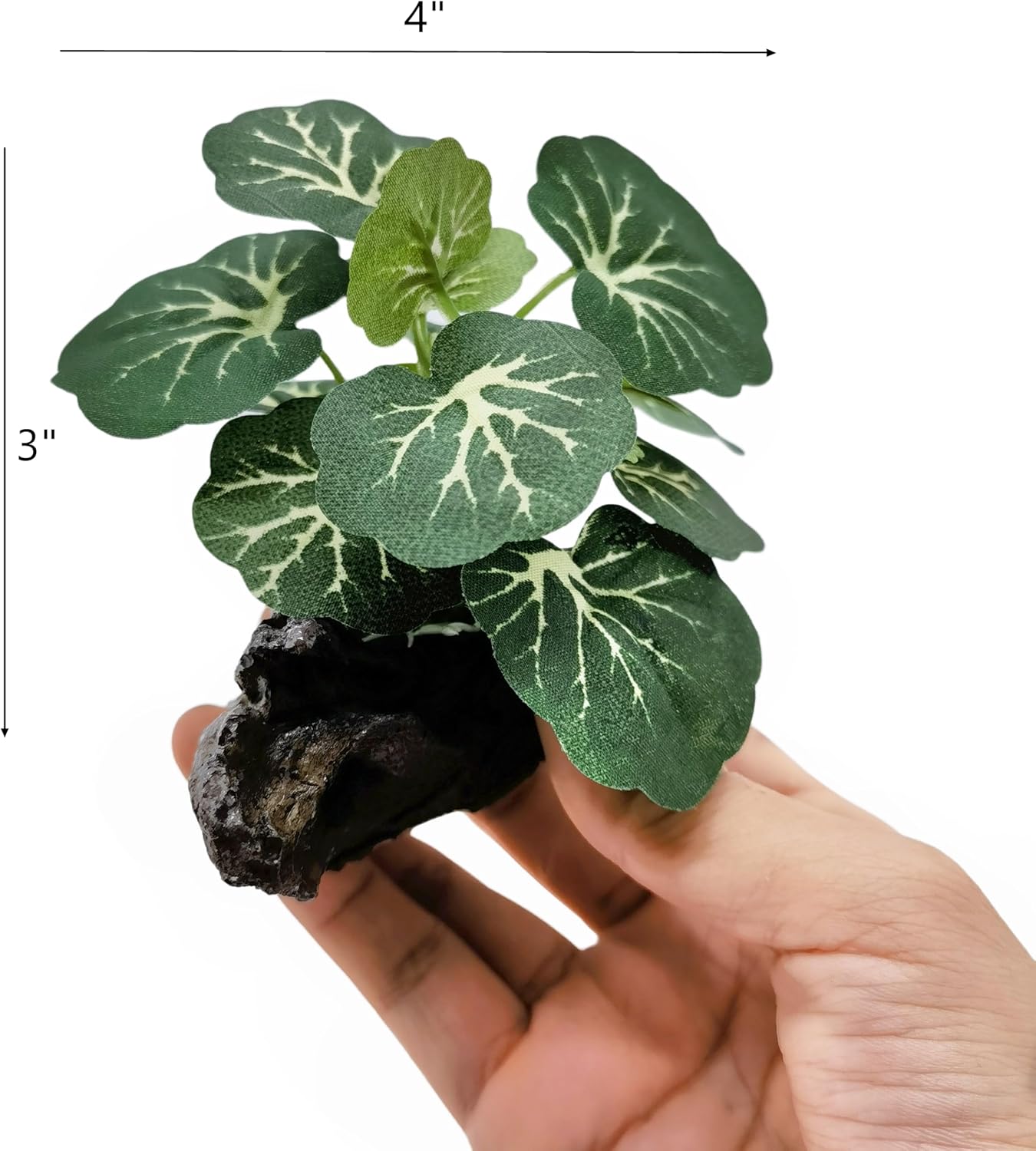 - Material: plastic stems and leaves, ceramic base shaped of tree trunk or rock, sizes measured about 4"x 3". Suitable for Small tank below 20 gallons or tank height less 16 inches