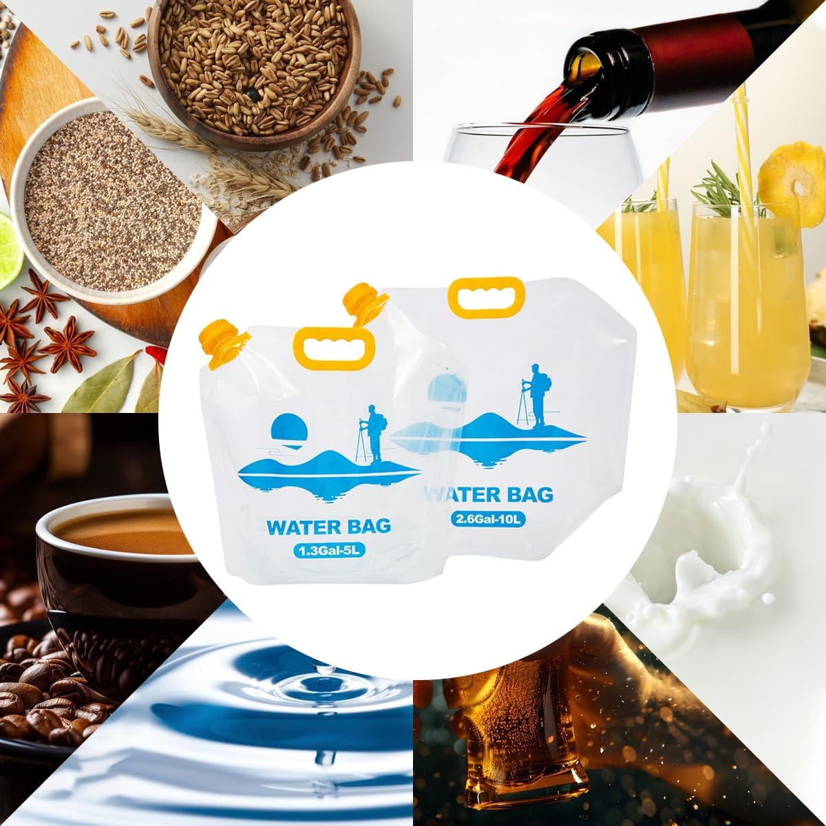 Collapsible Emergency Water Container Bag,WaterStorageCube,Flat Folding,BPA Free Food Grade,Clear Plastic Storage Jug for Camping Hiking Backpack,No-Leak Freezable,Water Bottle 1.3 Gallon/4pcs