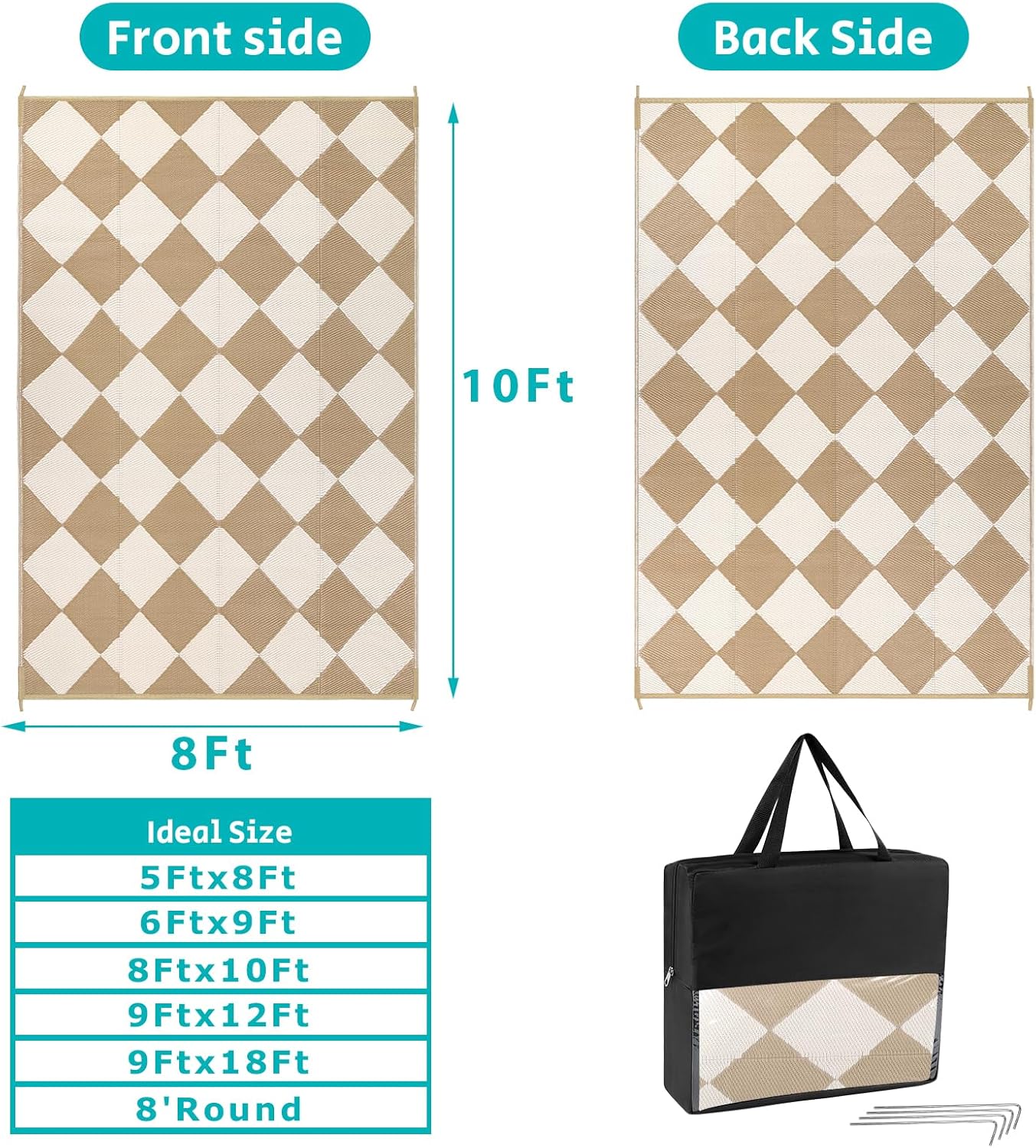 HEBE Outdoor Rug Waterproof 8x10, Plastic Straw Rug Camping Rug, Reversible Outdoor Patio Rugs RV Mat Clearance, Indoor Outside Floor Carpet for Porch,Deck,Camper,Balcony,Backyard