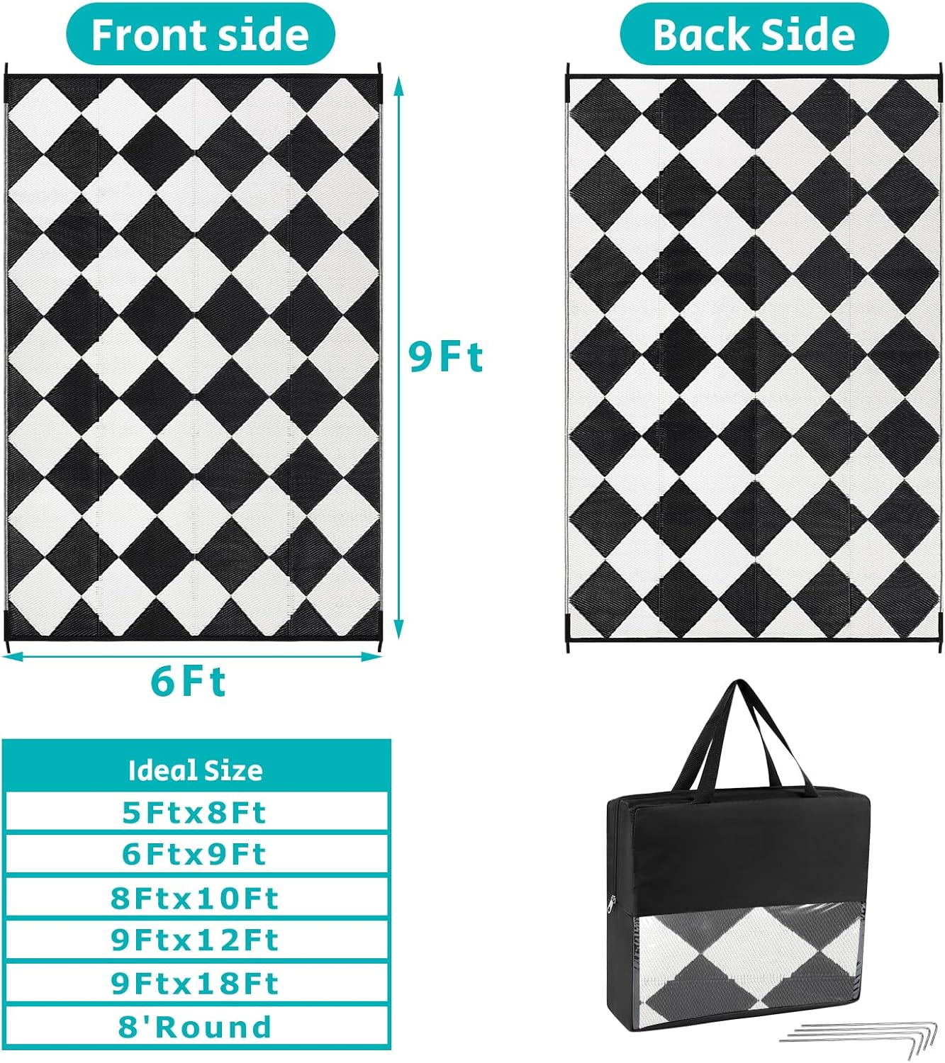 • XL Large Reversible Outdoor Rugs: Featuring a classic moroccan pattern on both sides, this rectangular 6x9 ft outdoor area rug allows you to instantly refresh your patio, porch, backyard, deck, RV campsite. And this outdoor deck rug is reversible, two-sided design allows you to have two different looks,both sides can blend perfectly with nature and look very full and comfortable.