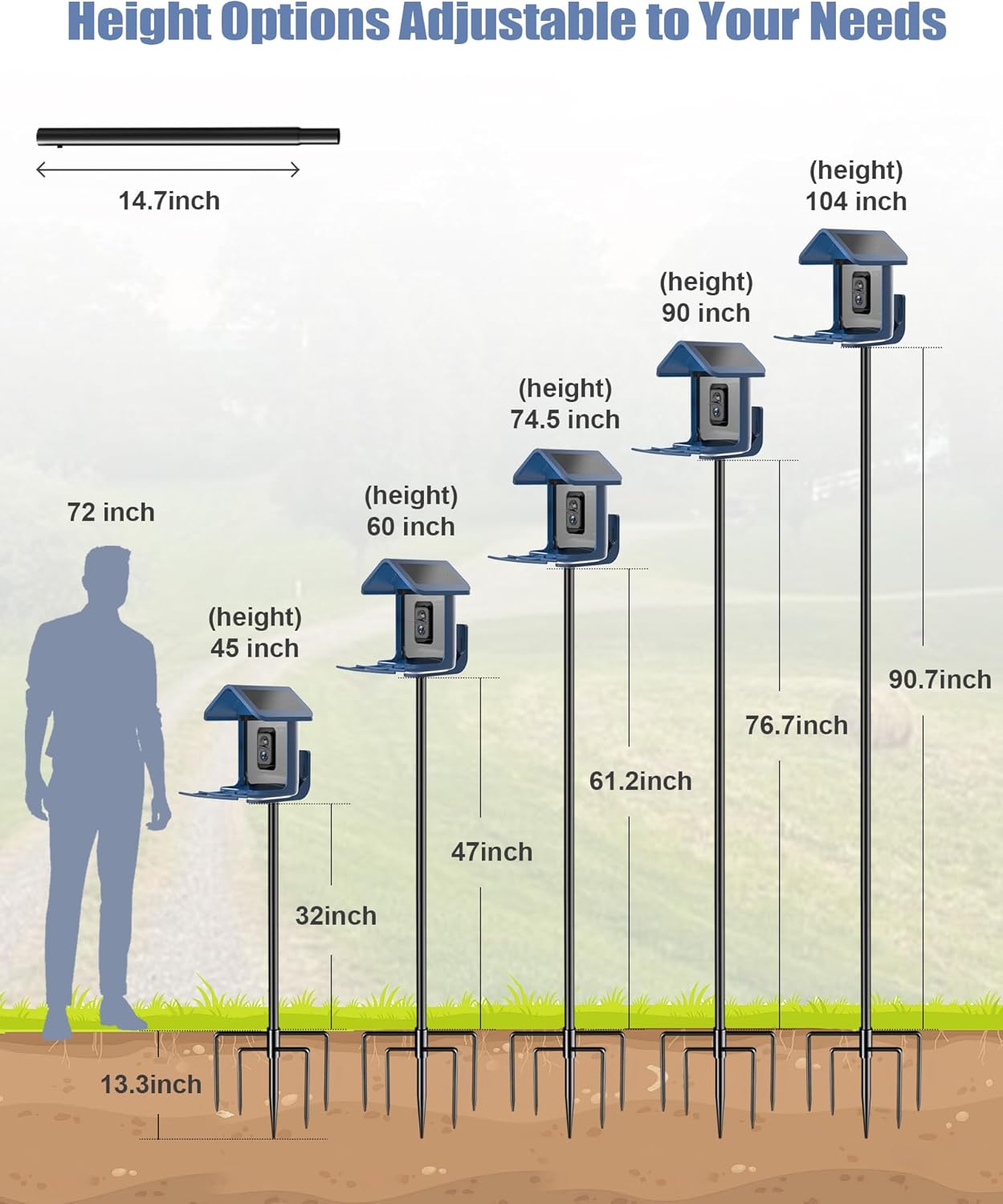 - 【Versatile Outdoor Use, Hang Multiple Items】Perfect for gardens, lawns, backyards, this bird feeder stand offers versatility for all your outdoor needs. In addition to hanging bird feeder cameras, hummingbird feeder, bird houses, and suet cage bird feeders, you can also hang flower baskets, windchimes, weathervanes, lanterns, and bird baths. Whether decorating your space or creating a haven for birds, this pole stand offers flexibility and function for various outdoor settings.