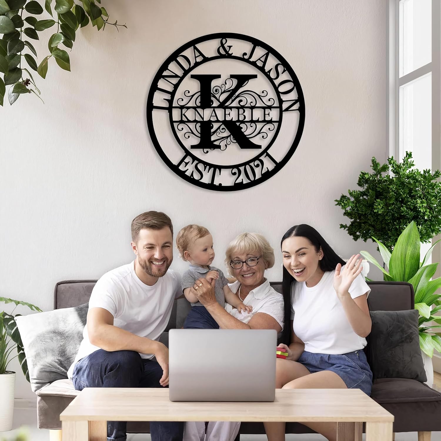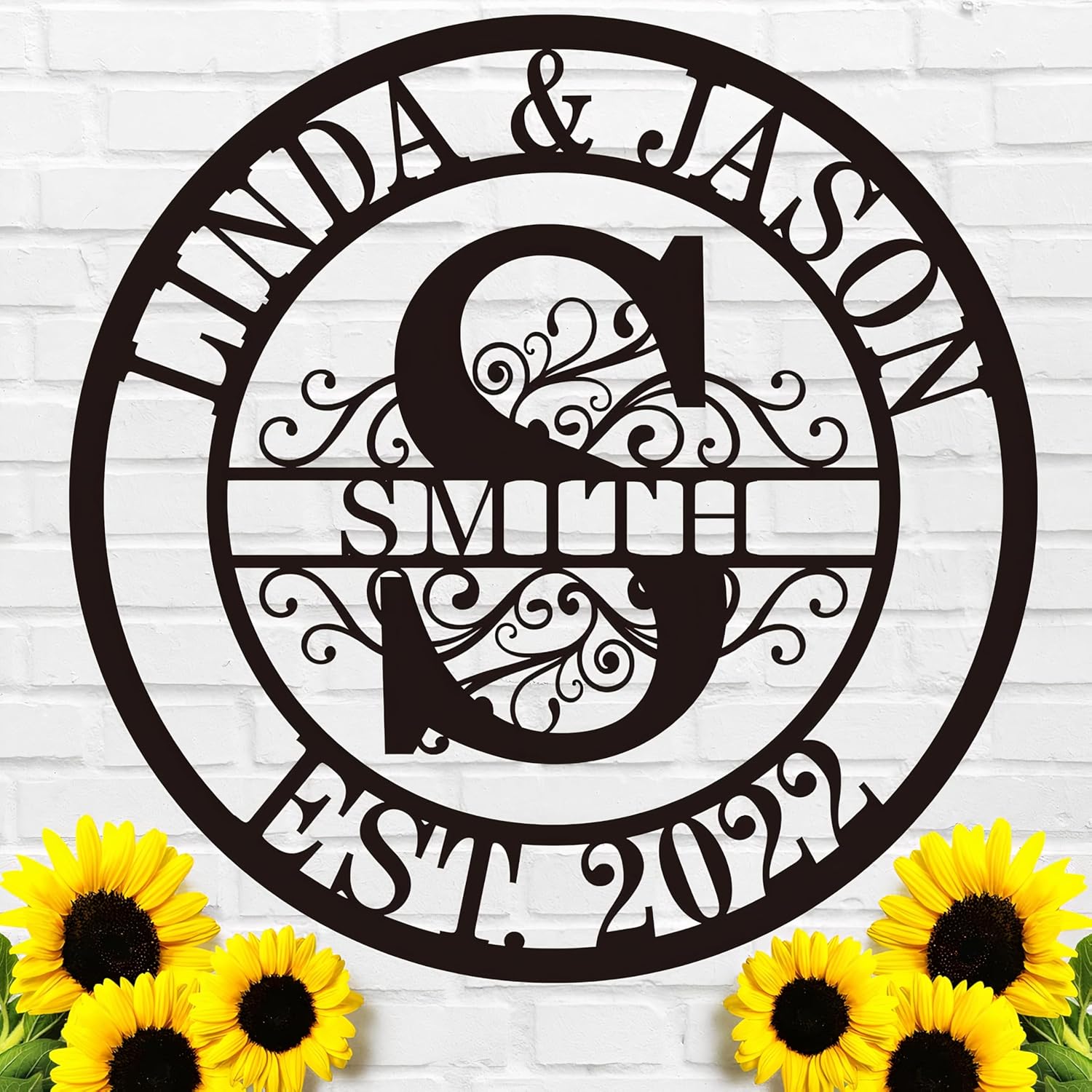Personalized Metal Name Signs, Split Letter Monogram Wall Decor, Custom Last Name Sign, Family Name Sign for Outdoor, Personalized Wedding Gift, Garden Decor, Metal Wall Art, Housewarming Gift (MonogramDesign_8)