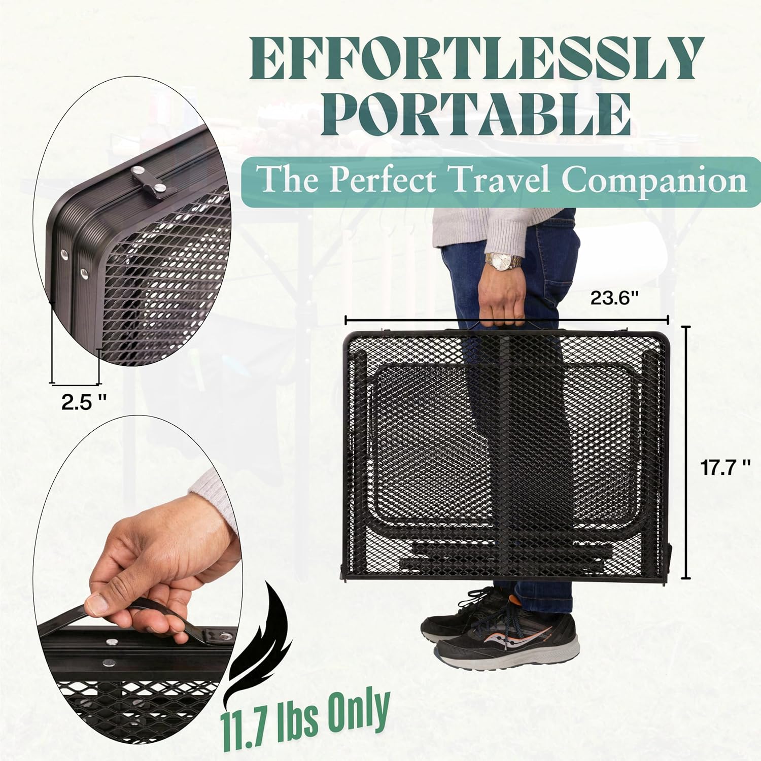 - ā Weather-Resistant: This metal portable camp table features a heat resistant and water- resistant surface. This small folding table portable design endures the elements. Its durable construction with exclusive coating guarantees long-lasting use as an outdoor dining table.