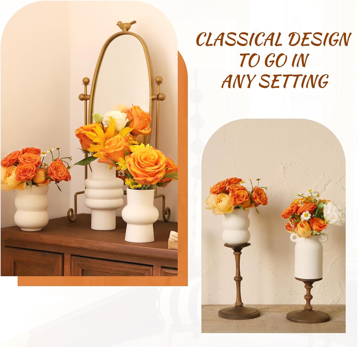 - High-Quality Ceramic for Long-Lasting Use:Crafted from premium ceramic, each vase is durable and sturdy. The smooth, pristine white finish beautifully accentuates the natural beauty of your flowers, enhancing the elegance of any floral arrangement. They showcase exceptional quality, whether used for daily decor or special occasion setups.