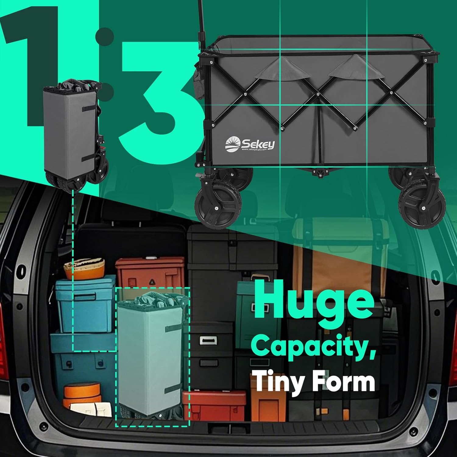 - ใ๐๐จ ๐๐ง๐ฒ๐ฐ๐ก๐๐ซ๐ ๐๐ก๐๐๐ฅ๐ฌใ: Featuring ๐" ๐๐ข๐๐ฆ๐๐ญ๐๐ซ ๐ฐ๐ก๐๐๐ฅ๐ฌ ๐๐ง๐ ๐" ๐ฐ๐ข๐๐ ๐ญ๐ซ๐๐๐๐ฌ, Sekey wagon glides effortlessly over sand and rough terrain. The ๐๐ง๐ญ๐ข-๐ฌ๐ฅ๐ข๐ฉ ๐ซ๐ฎ๐๐๐๐ซ strip enhances traction and reduces vibrations, while the ๐๐ฎ๐ข๐ฅ๐ญ-๐ข๐ง ๐๐ซ๐๐ค๐๐ฌ provide reliable stopping power wherever you go.
