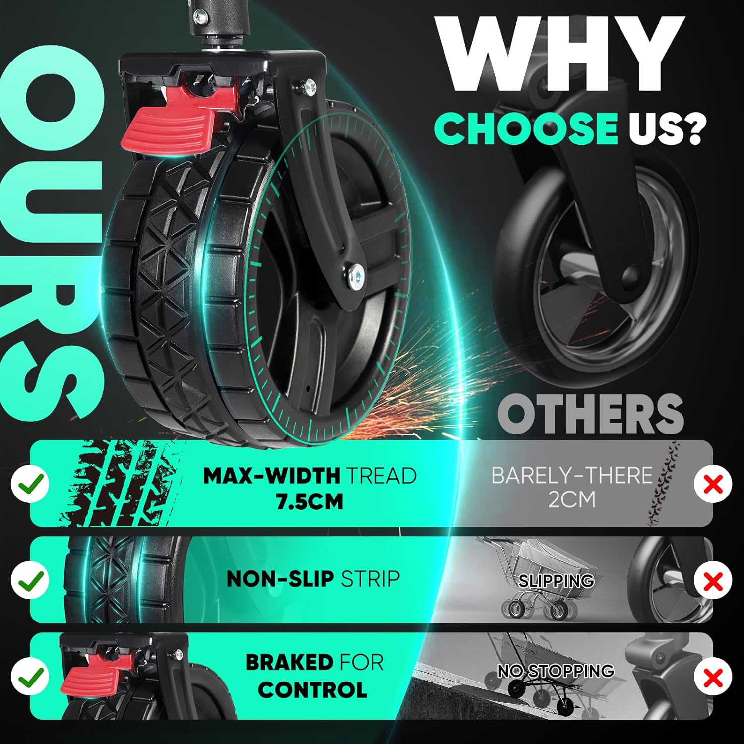 - ใ๐๐ง๐๐ซ๐๐๐ข๐๐ฅ๐ ๐ฆ๐๐ง๐๐ฎ๐ฏ๐๐ซ๐๐๐ข๐ฅ๐ข๐ญ๐ฒใ: Our ๐ฉ๐๐ญ๐๐ง๐ญ๐๐ ๐๐ซ๐๐ฆ๐ and ๐๐๐ฃ๐ฎ๐ฌ๐ญ๐๐๐ฅ๐ ๐ก๐๐ง๐๐ฅ๐ keep the cart perfectly aligned with your movements. With ๐๐๐ยฐ ๐ฌ๐ฐ๐ข๐ฏ๐๐ฅ ๐ฐ๐ก๐๐๐ฅ๐ฌ, it turns effortlessly, follows your lead, and handles ๐ญ๐ข๐ ๐ก๐ญ ๐-๐ญ๐ฎ๐ซ๐ง๐ฌ with zero hassleโmaking every move smooth and intuitive.