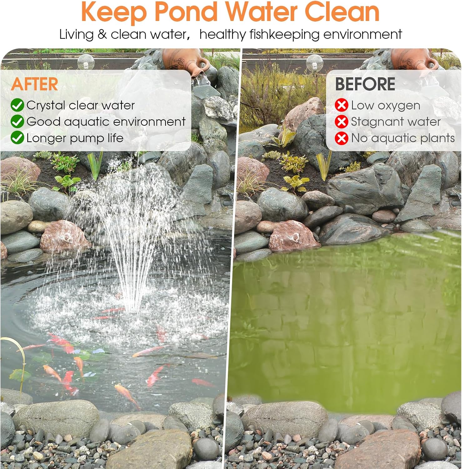 - â˛ăMulti-Protection Filtration SystemăSolar Pond Pump built-in dry burning protection prevents motor damage, while the filter sponges, bio-balls and ceramic filtrations create an efficient multi-filtration zone. This integrated system significantly enhances water clarity in ponds, water gardens, and fountains, ensuring long-lasting performance and minimal upkeep.This design provides a reliable solution for maintaining crystal-clear water in various water features.