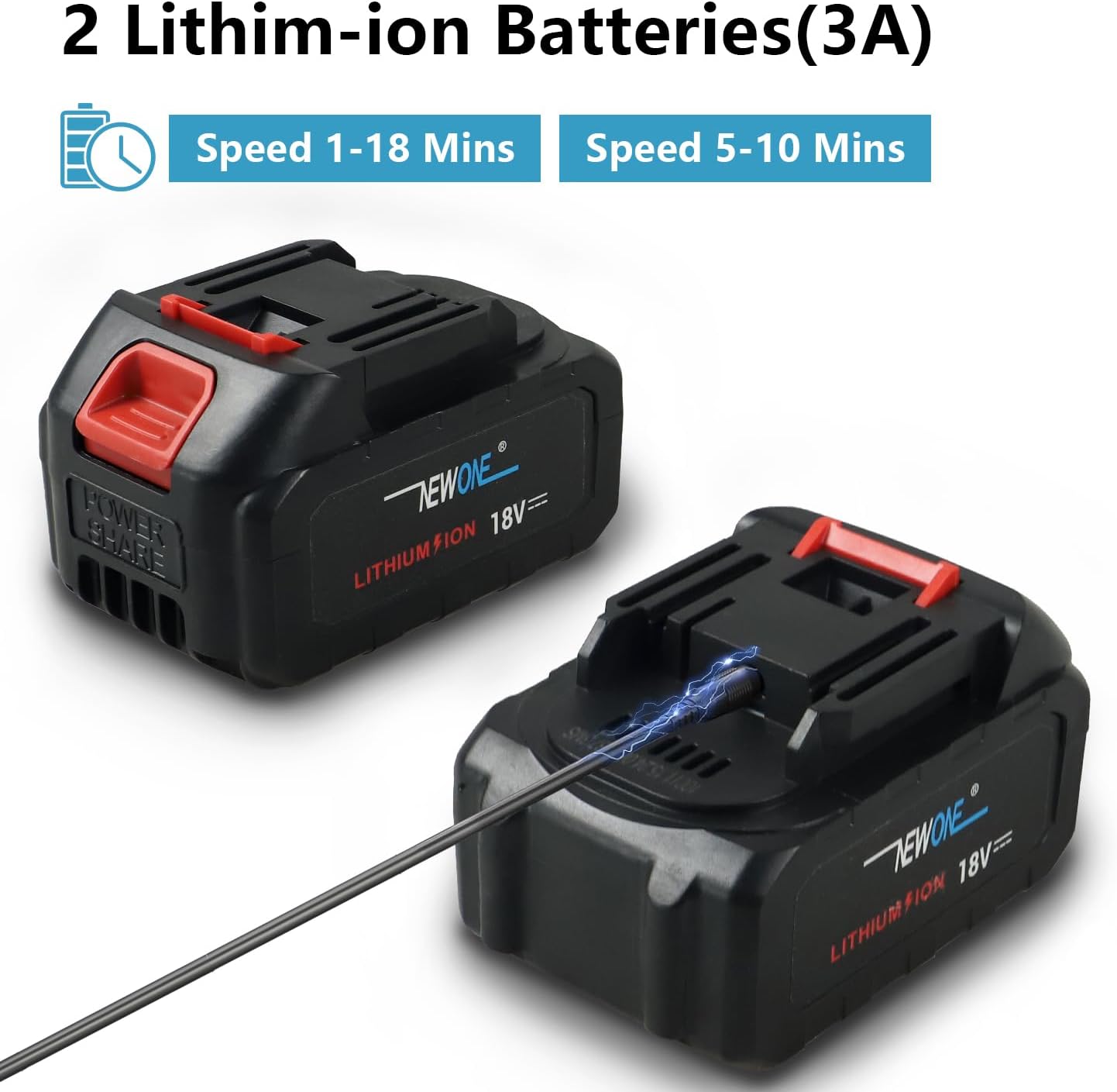 - Powerful Motor: NEWONE leaf blower adopts advanced axial flow turbofan, up to 820 CFM and 160 MPH, effectively improving air volume and wind power. It is equipped with a charger and 2 x 3.0 Ah batteries, which can be used alternately