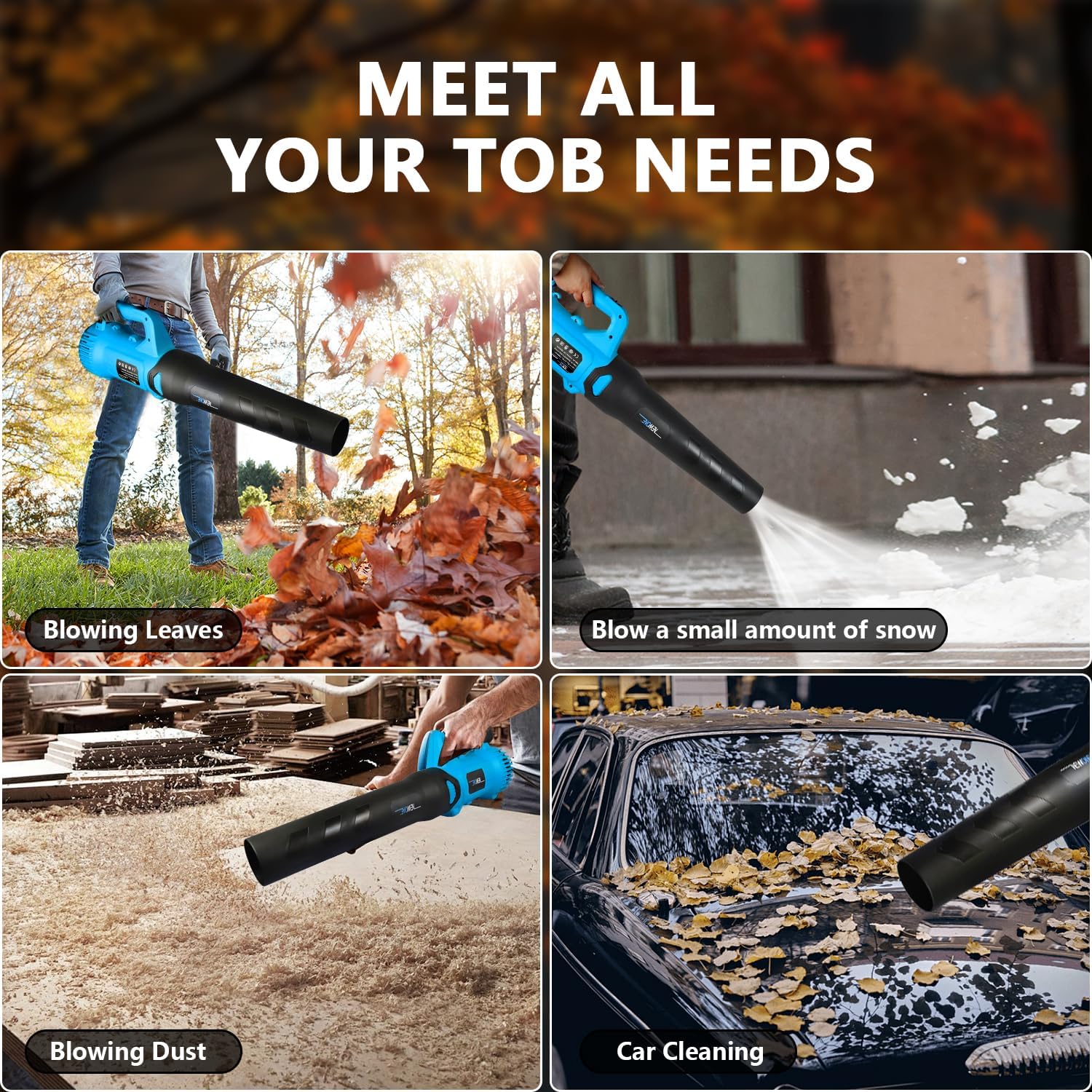 - Efficient Cleaning: This leaf blower/air blower not only helps you to clean the garden of fallen leaves, snow; but also can clean the corner and gap which is hard to clean;Perfect for the courtyard, garage, the car inside and engine compartment, etc;Cordless design allows you to clean up anywhere wanted